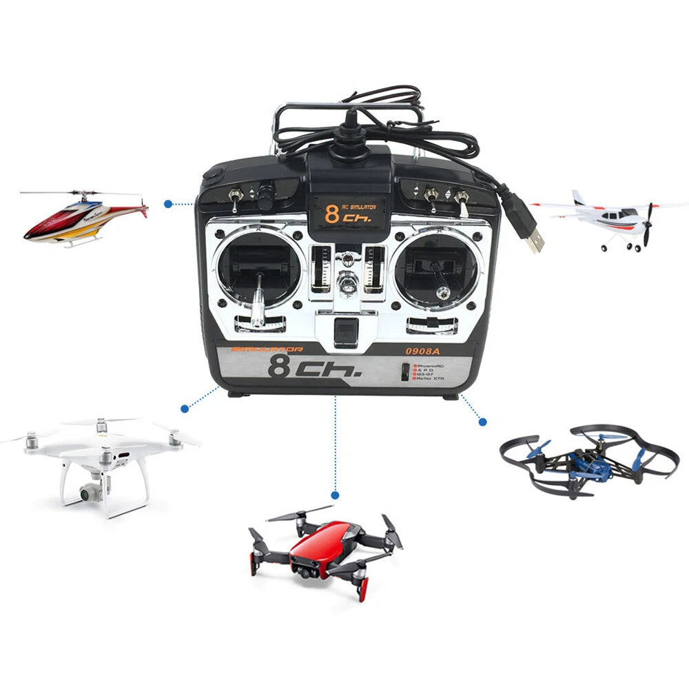 0908A 8CH 16-in-1 RC Flight Simulator W/CD For Phoenix5.0 XTR Realflight G7 for FPV Racing Drone Helicopter Quadcopter