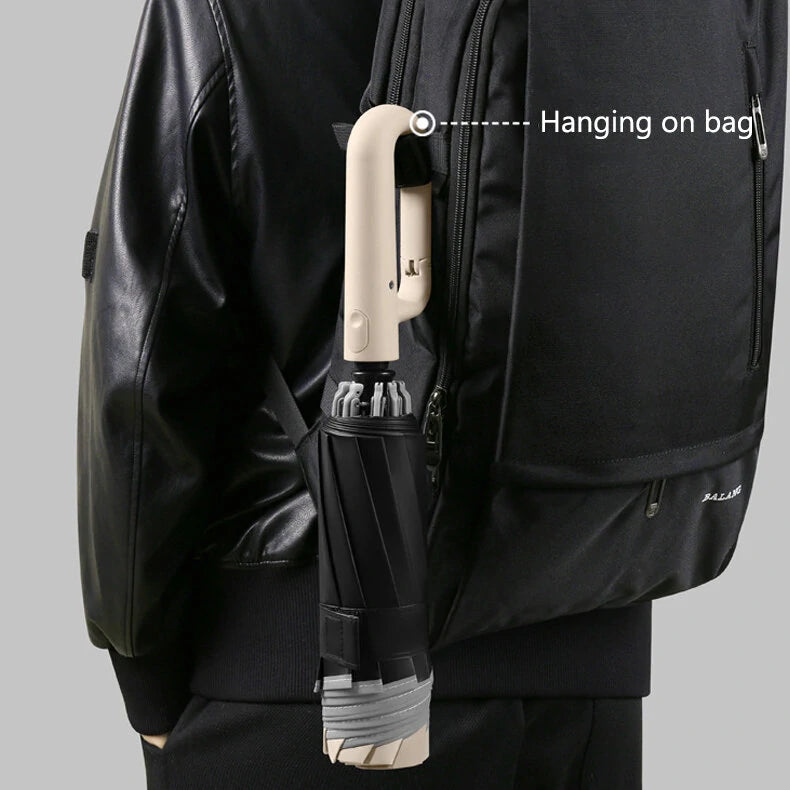 4. Novel carabiner handle: allows you to clip the sturdy umbrella to a variety of places, backpacks, purses, suitcases, handbags, belt loops, golf bags, strollers, bicycles, etc., which can help you avoid losing or misplacing the umbrella!