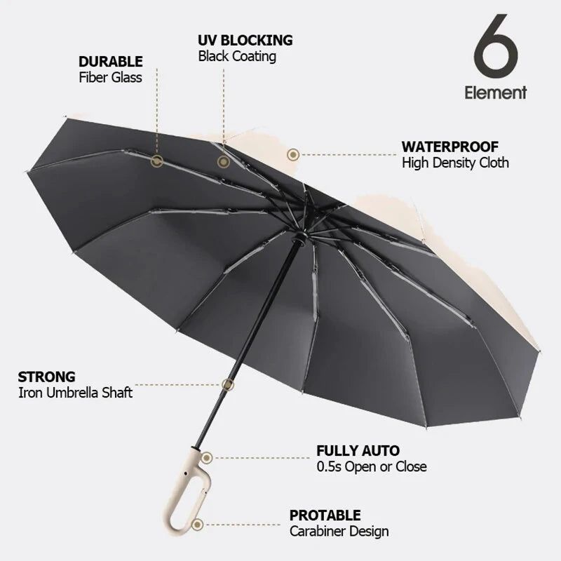 2. Excellent Windproof and Waterproof Performance: This UV Umbrella is crafted with top-quality materials to provide excellent windproof and waterproof performance. The umbrella's sturdy construction and reinforced frame make it resistant to strong winds, ensuring that it won't flip inside out during gusty weather. Additionally, its waterproof canopy material effectively repels rain, keeping the user dry even during heavy downpours.