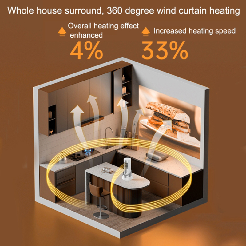 4. Wide-Angle Air Supply: The portable heater has a 360° air supply that covers a large area and provides even warmth. Its innovative design allows the warm air to flow smoothly and efficiently, ensuring that everyone in the room stays comfortable.