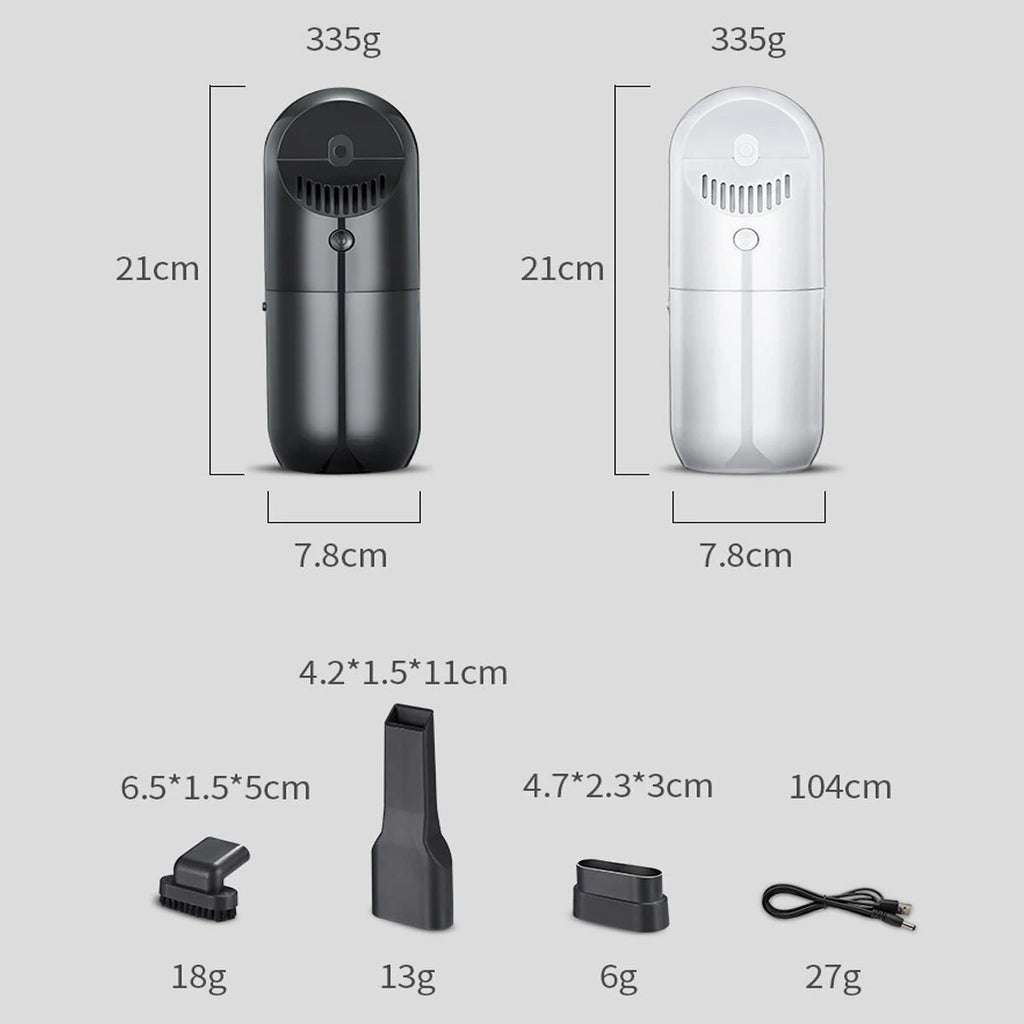 Color: White/Black Type: Wired/Wireless Vacuum Degree: ≥3500Pa Filter Material: HEPA Voltage: DC12V Power: 120W Rated Speed: 35000rpm Scope: Car/Home Us Charging Time: 3-4 hours |