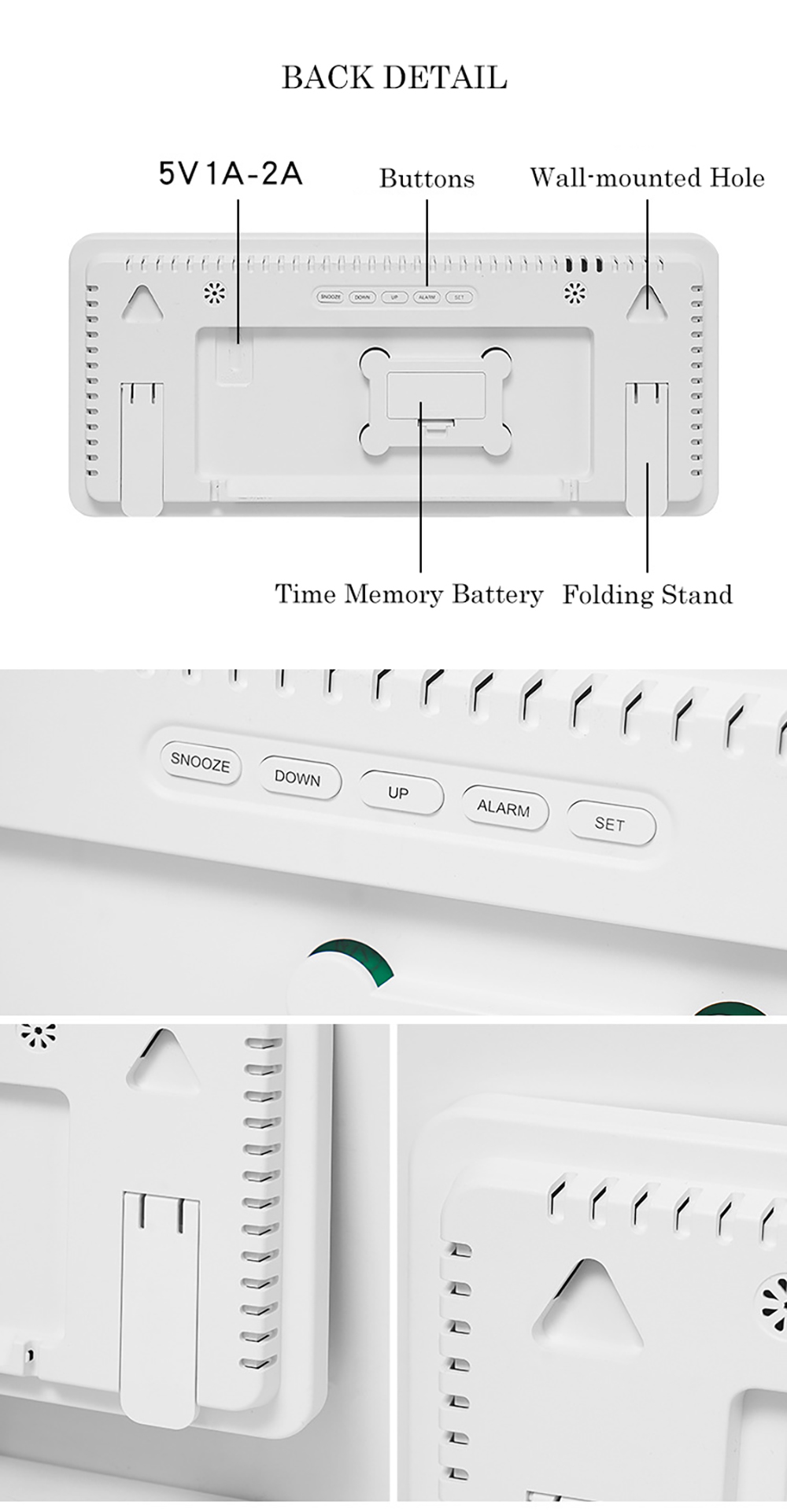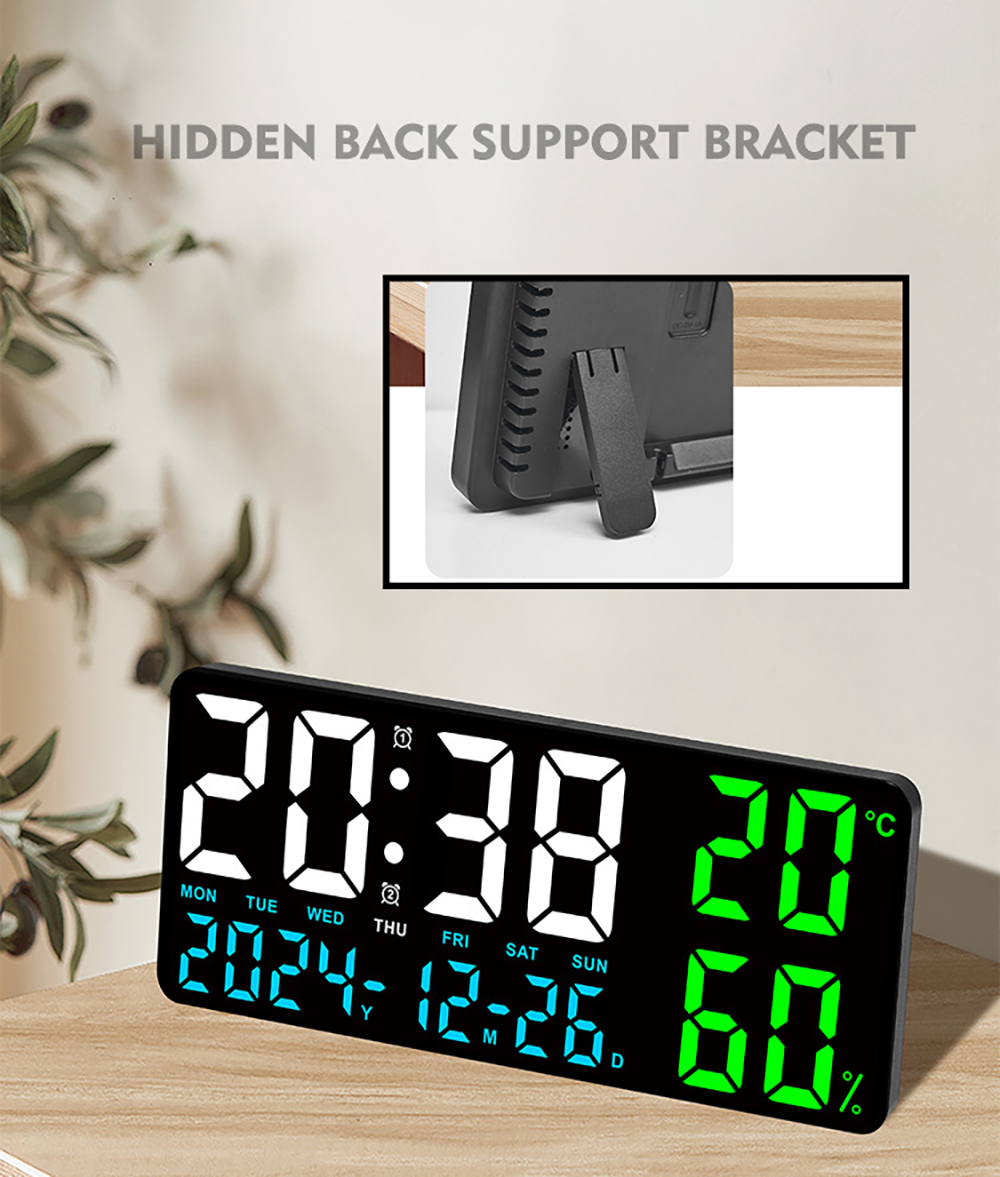 Beyond just showing the time, this clock displays the weekday, date, temperature, and humidity levels. Easily switch between Celsius and Fahrenheit to meet your preference. Stay informed about your environment at a glance.