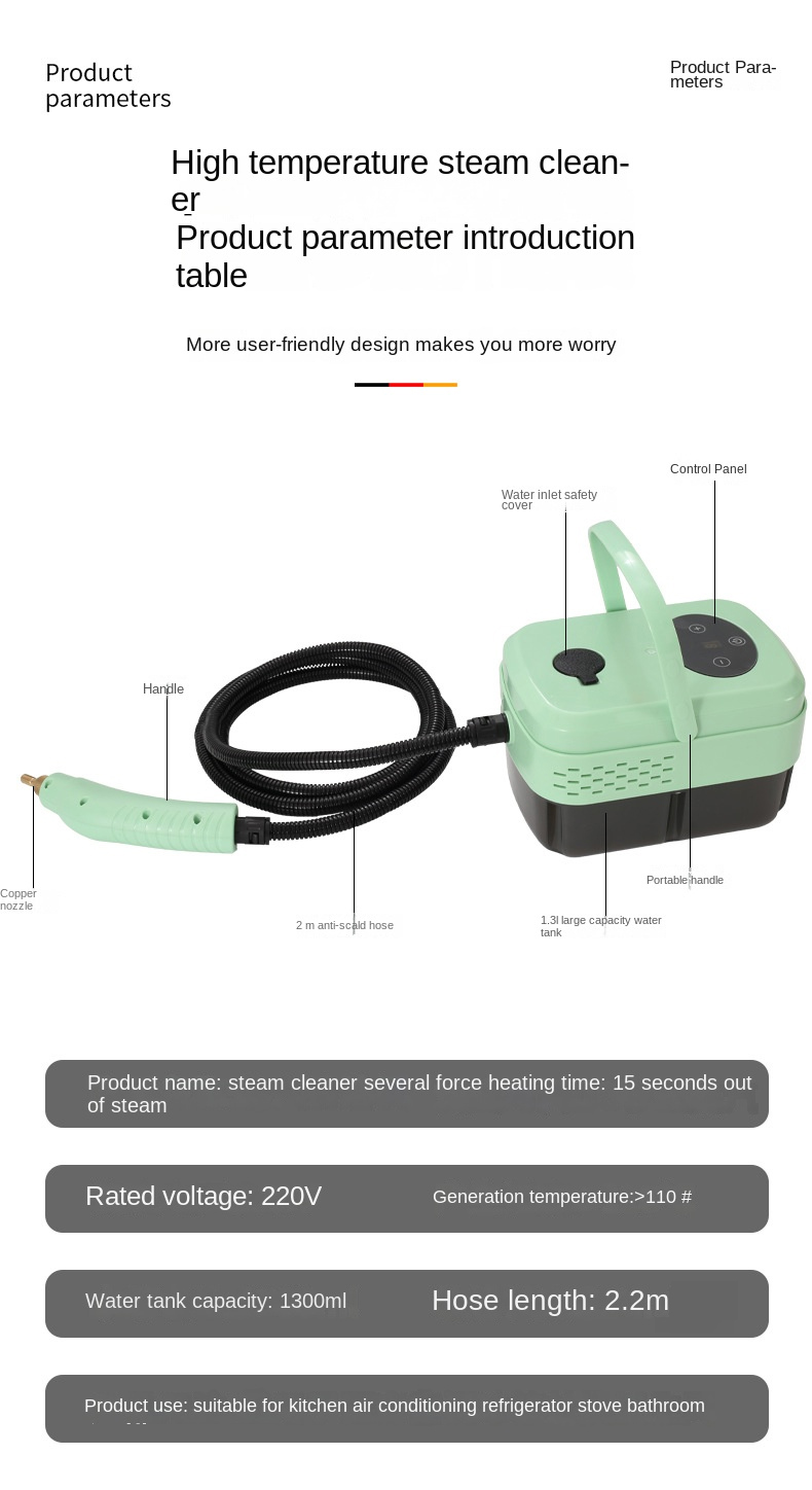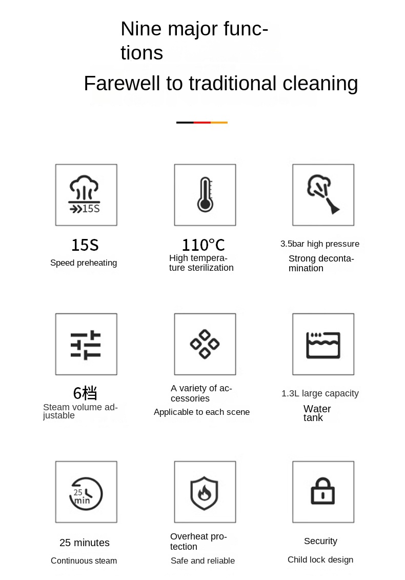 High Temperature: Emits steam at over 110°C, ensuring deep cleaning and effective sanitization.