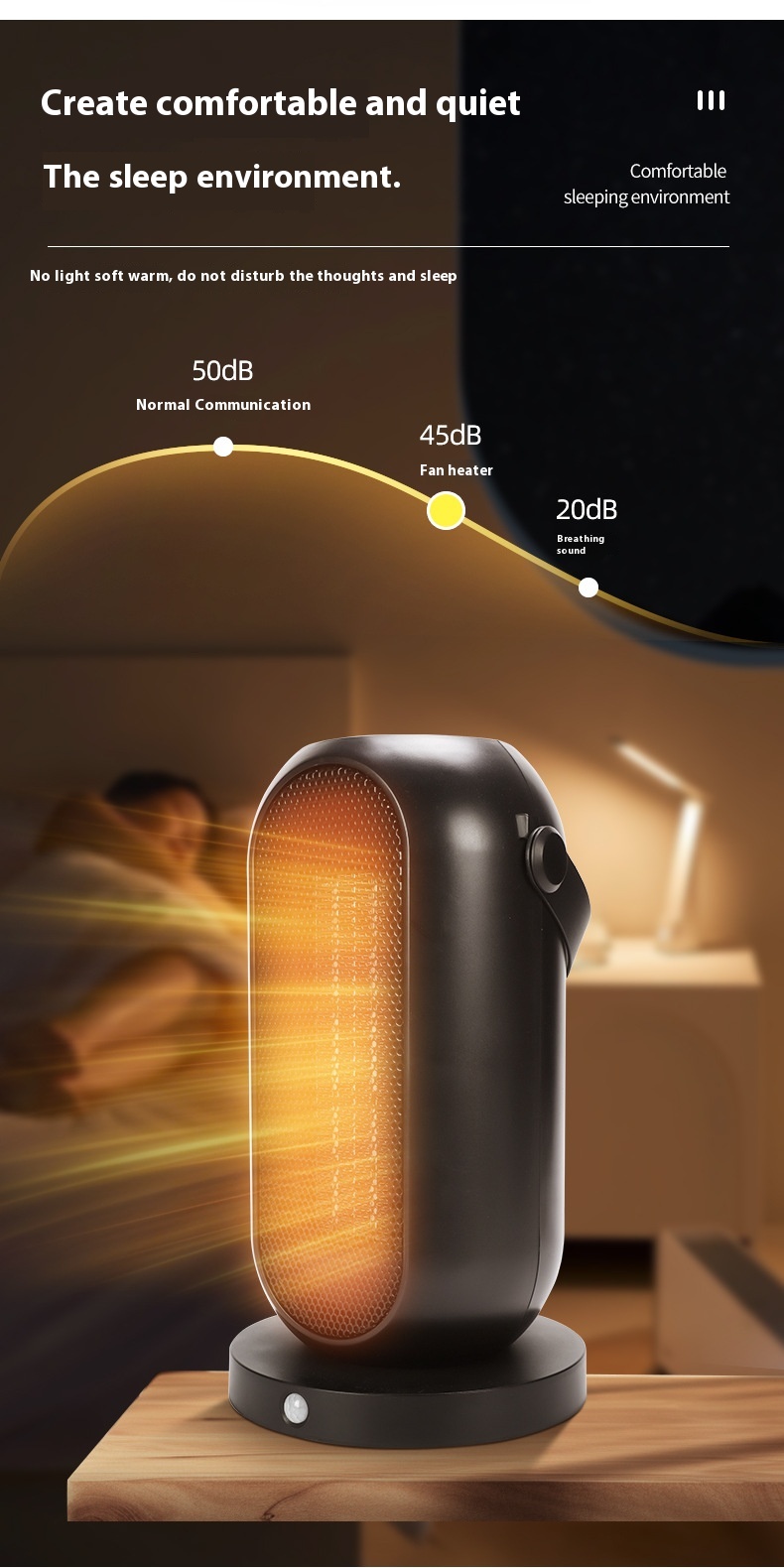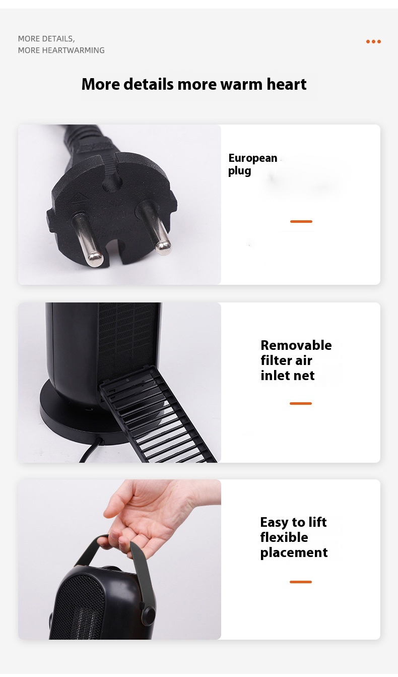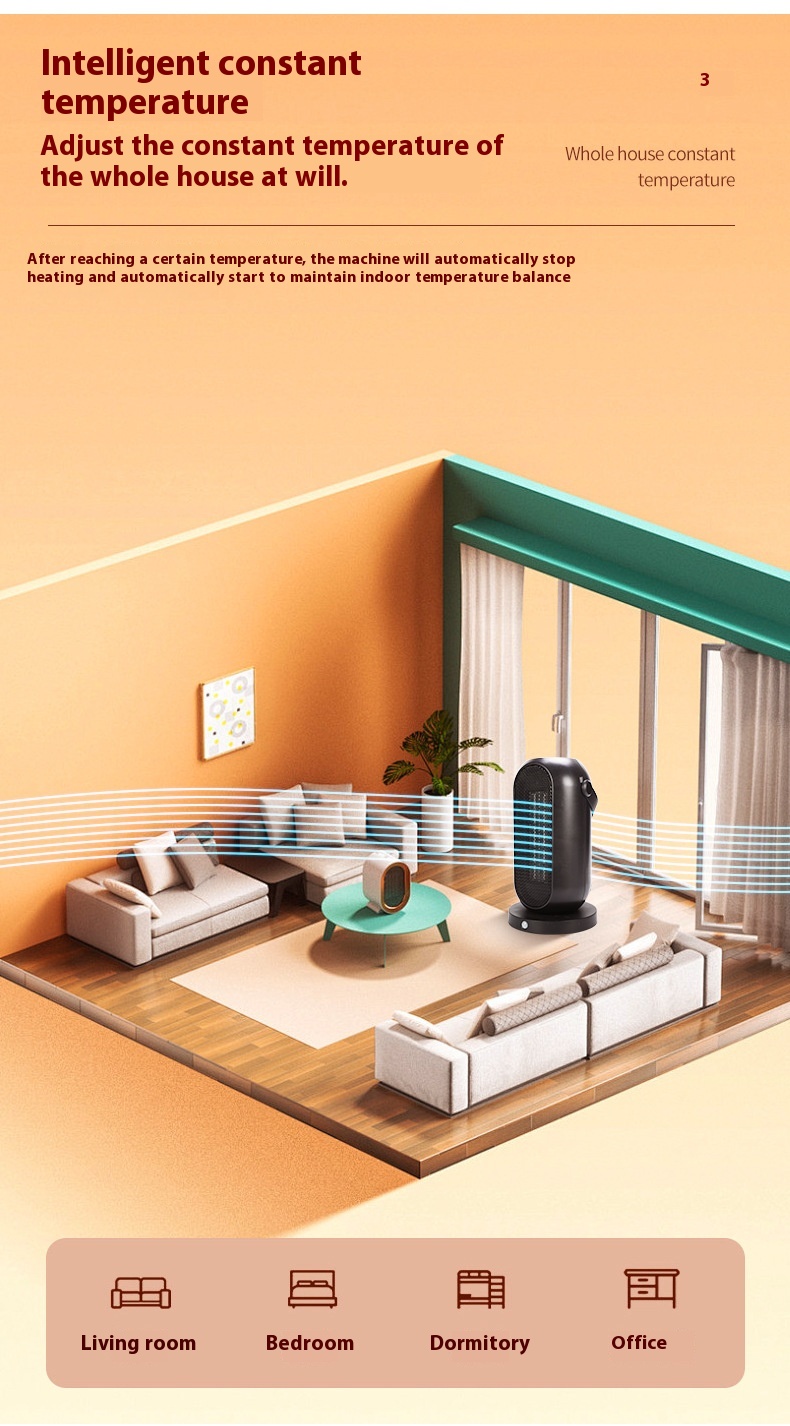 The innovative 70-degree shaking head allows for a wider heating range, ensuring that warmth evenly covers the space. This feature makes it ideal for larger rooms, providing a cozy environment everywhere.