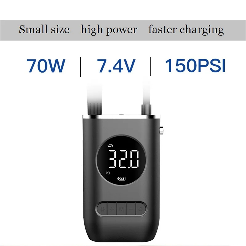 1. Portable wireless air pump, LED digital display, accurate pressure measurement, timely and intuitive understanding of tire pressure status, and ensure travel safety.