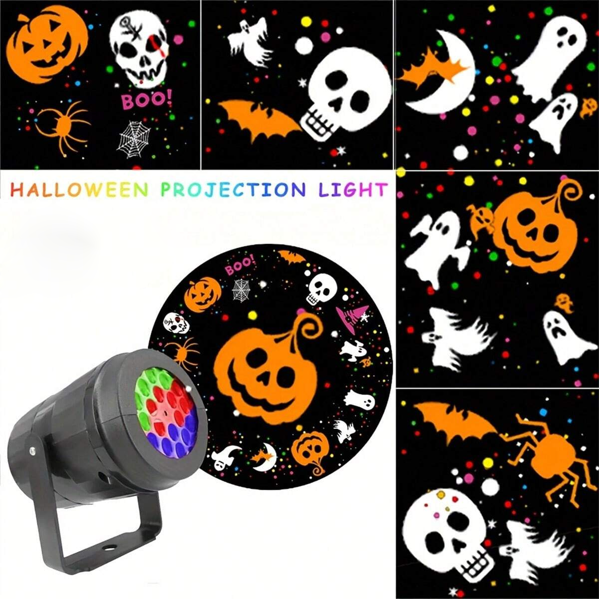 -- This Halloween decorative light comes with 16 different scary patterns designed to create a festive and spooky atmosphere. The patterns include classic Halloween icons like pumpkins, ghosts, bats, and witches, perfect for setting a scary scene.