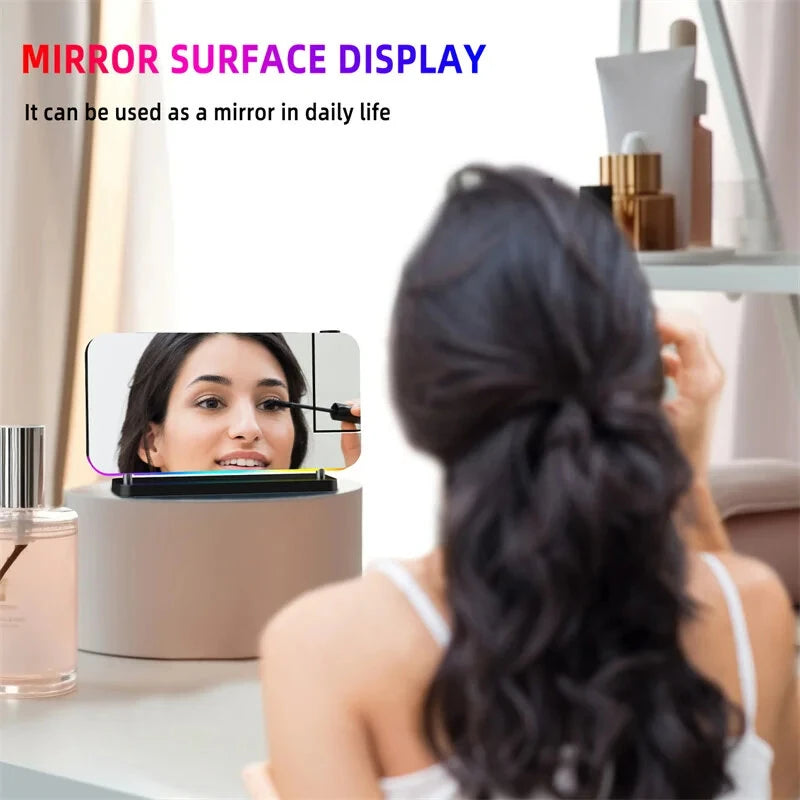 - Dynamic RGB Display and Ambient Light: Enhance your room's ambiance with the dynamic four-gradient RGB display and seven monochrome displays. The four dynamic gradients include single color, total color, left to right, and bottom to top gradients. Additionally, the base has RGB ambient lighting with marquee color, total color, breathing gradient effects, and seven single-color settings (warm white, red, yellow, green, cyan, blue, purple). The base's ambient light brightness can be manually adjusted in six steps for a personalized lighting experience.