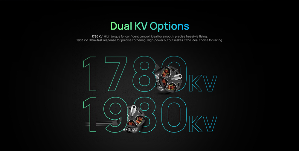 - Dual KV Options: 1780KV for smooth flight control; 1980KV for ultra-responsive cornering.
