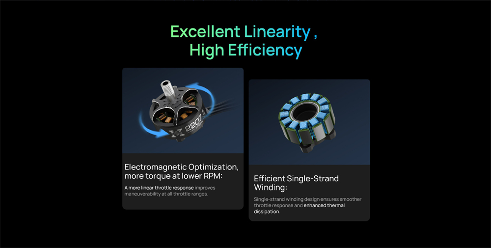 - Single-strand winding ensures stable throttle response and improved thermal dissipation.