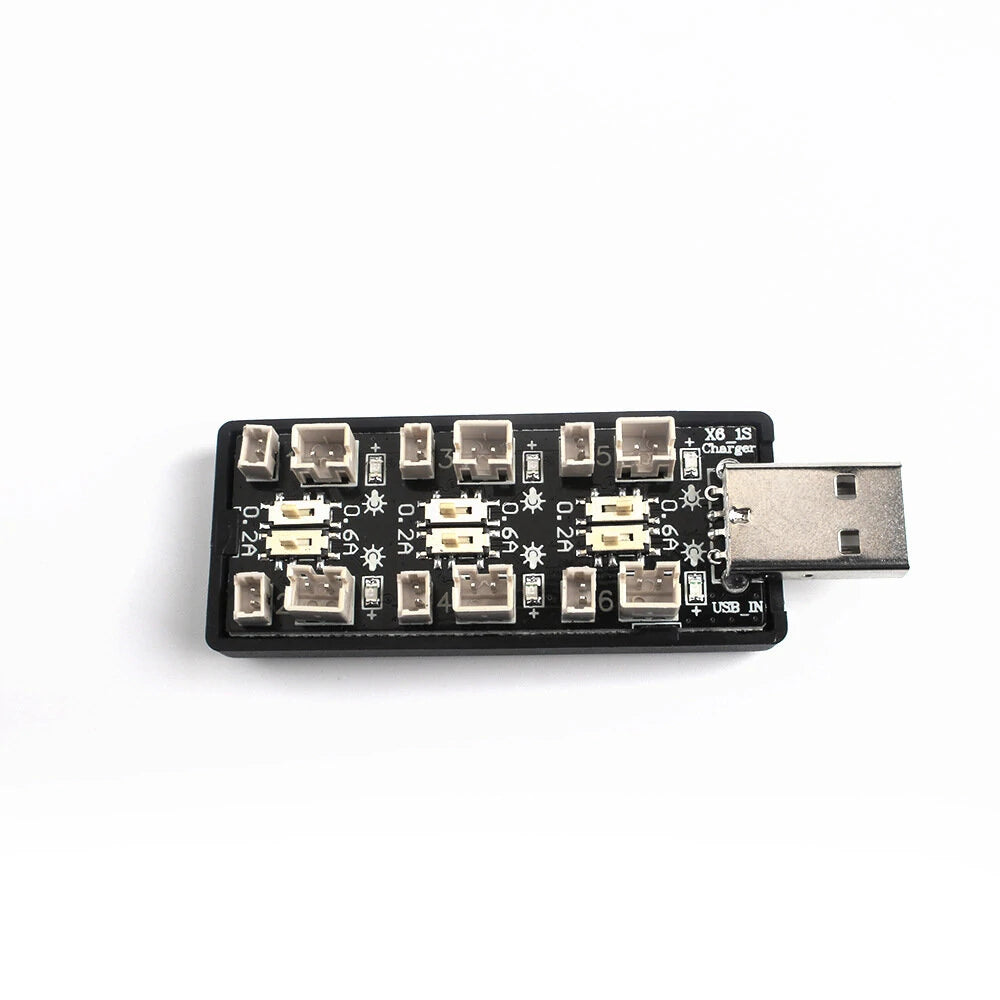 6 LED indicators independently indicate the charging status of the six channels, the charging process flashes, and the charging is complete