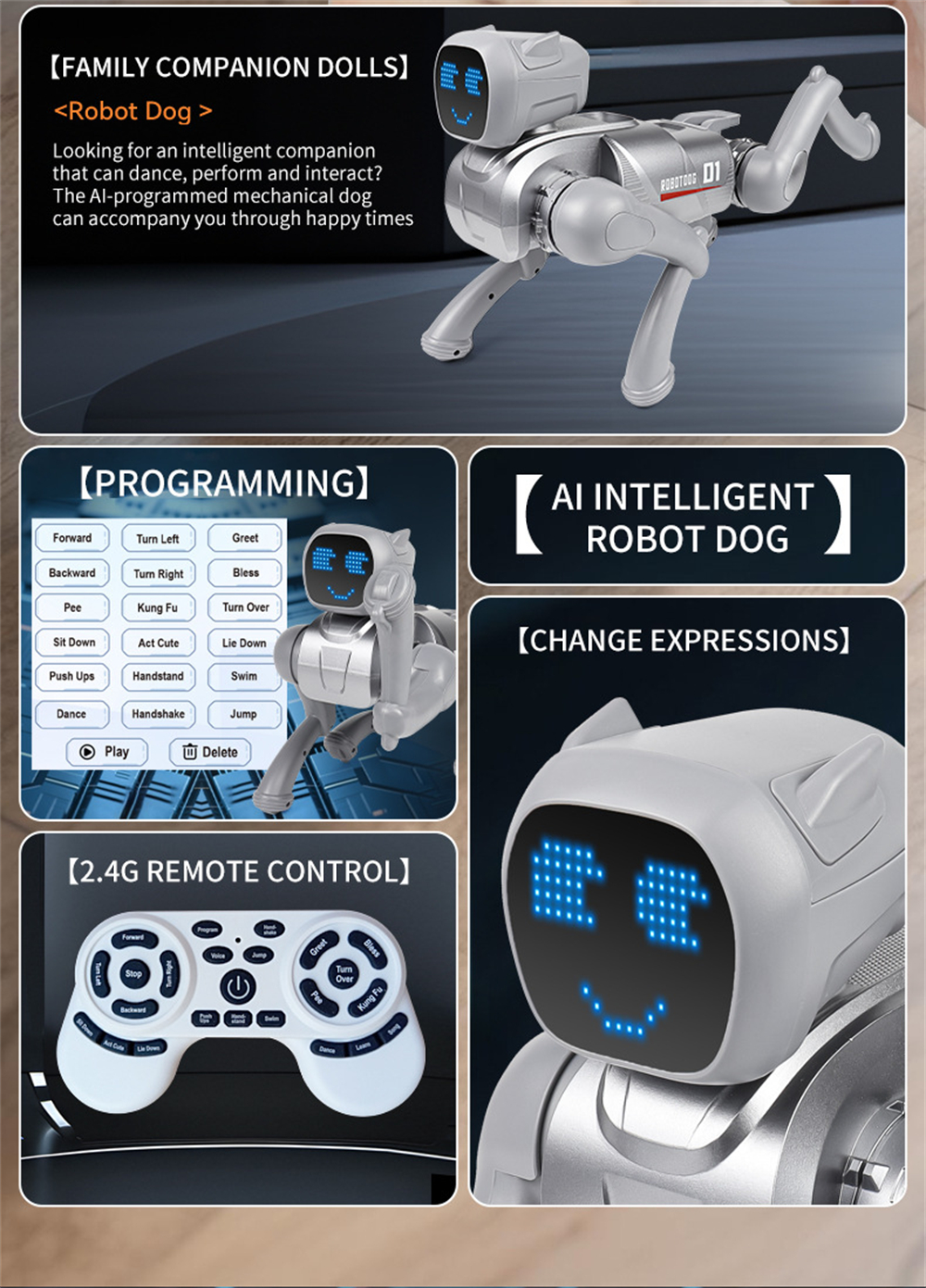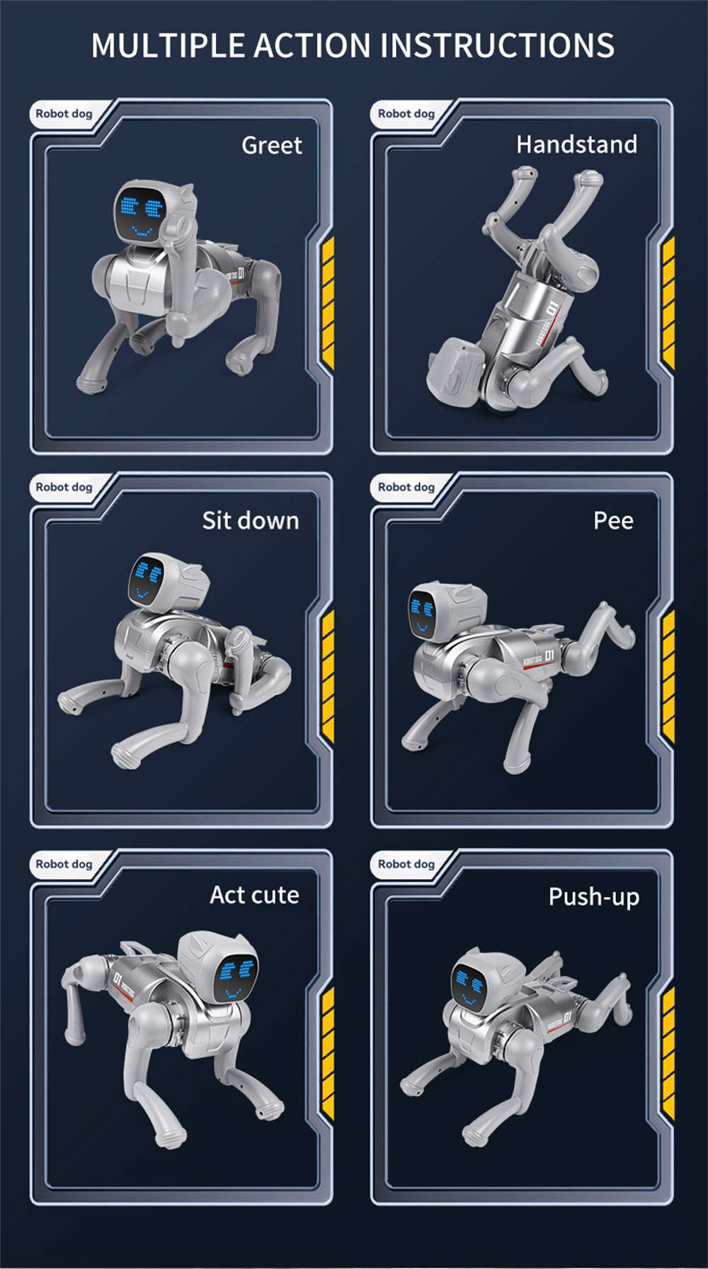 - Smart Voice Command System: Easily interact with the robot dog using voice commands for actions such as dancing, push-ups, and handshakes.