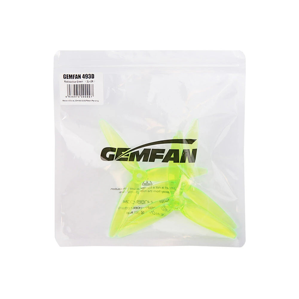 Gemfan 493D propellers are the latest designed 3D propellers, with a diameter of 4.9 inch, for 5 inch FPV drone. They feature low rotational inertia, making them more suitable for performing 3D freestyle flying maneuvers with drones.
