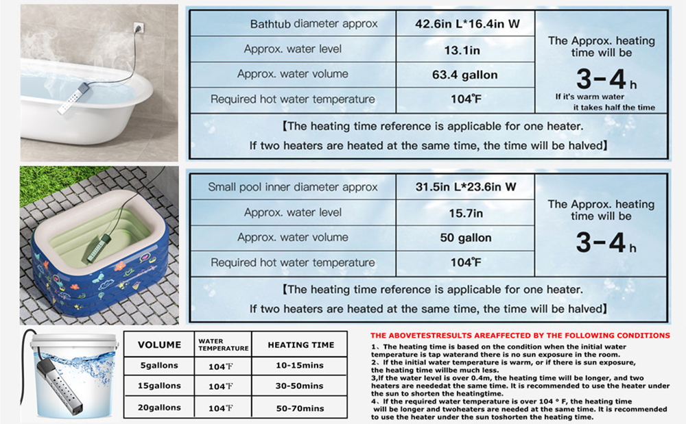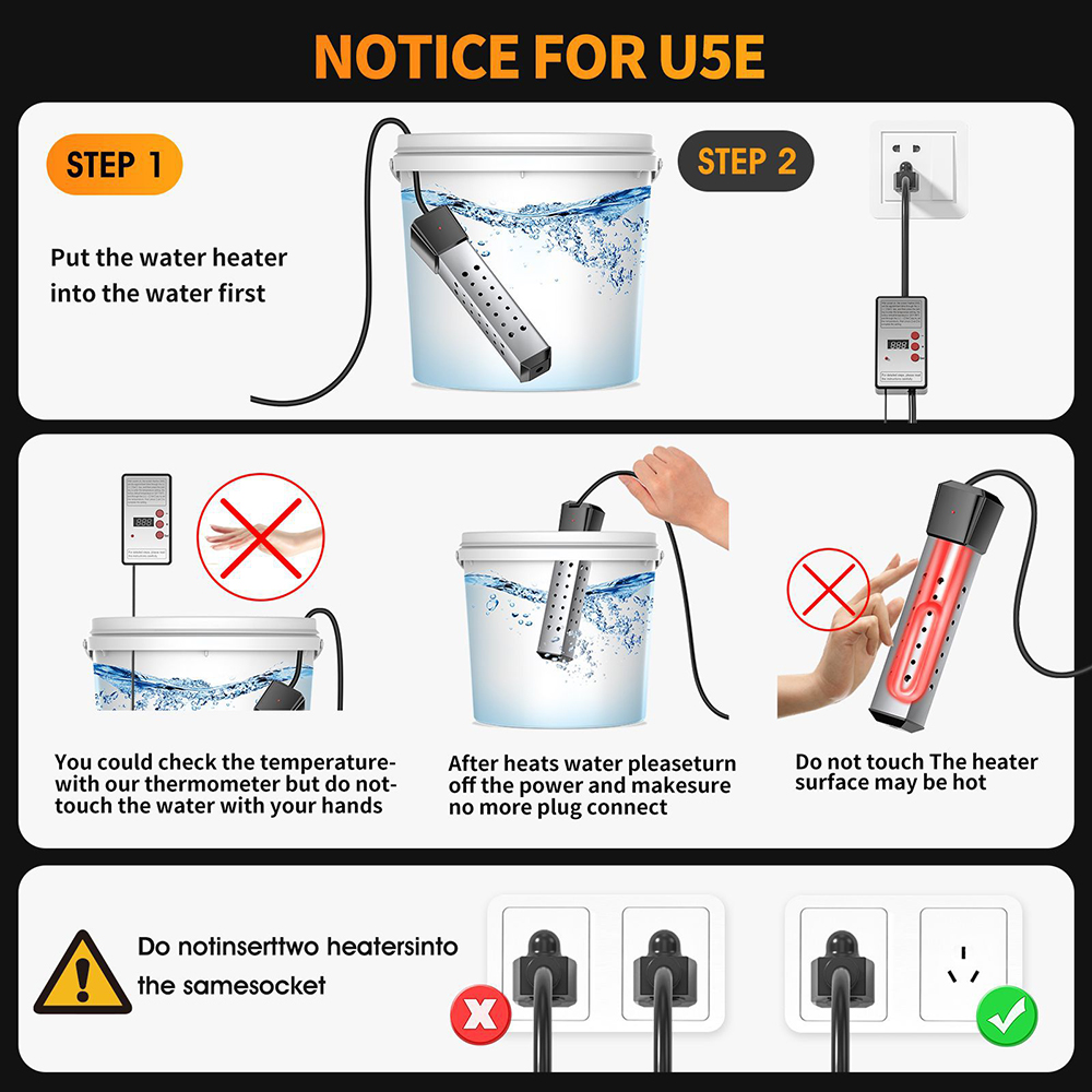 - Wide Application: Suitable for a variety of uses, including bathtub heaters, pool heaters, bucket heaters, and instant water heaters.