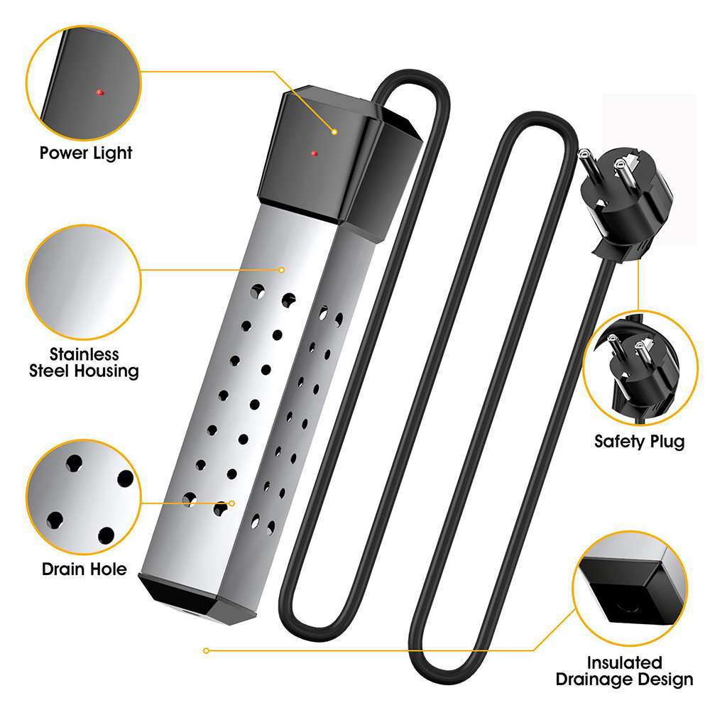 - Fast heating: This immersion water heater is equipped with a powerful 2000W heating element, which can quickly heat water to meet your daily needs.