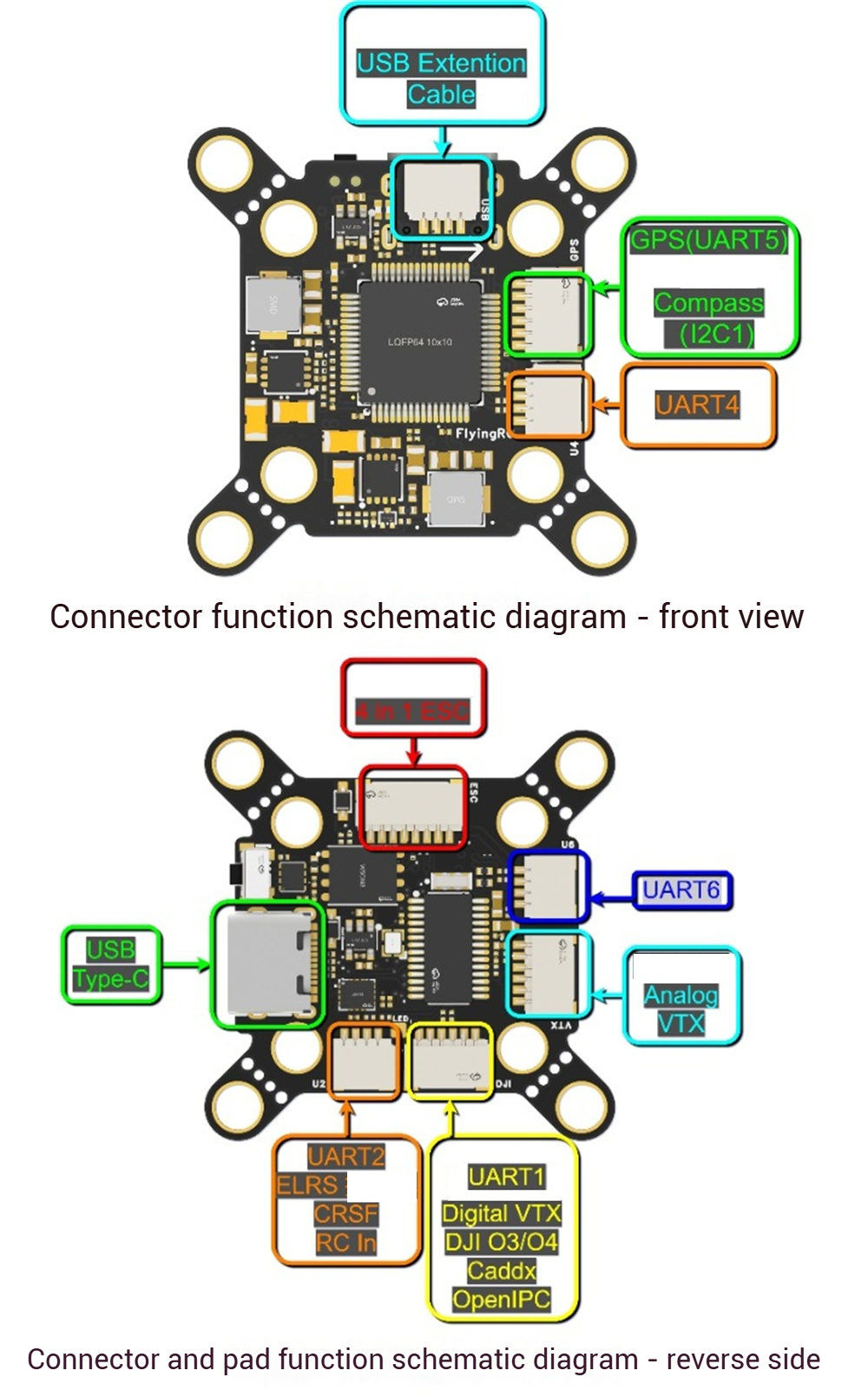 - Full SH1.0 socket design: ESCs, receivers, GPS, analog VTX, analog cameras, HD VTX, and LED strips all connect via sockets, eliminating troubles of difficult soldering and easy bridging on small pads.
