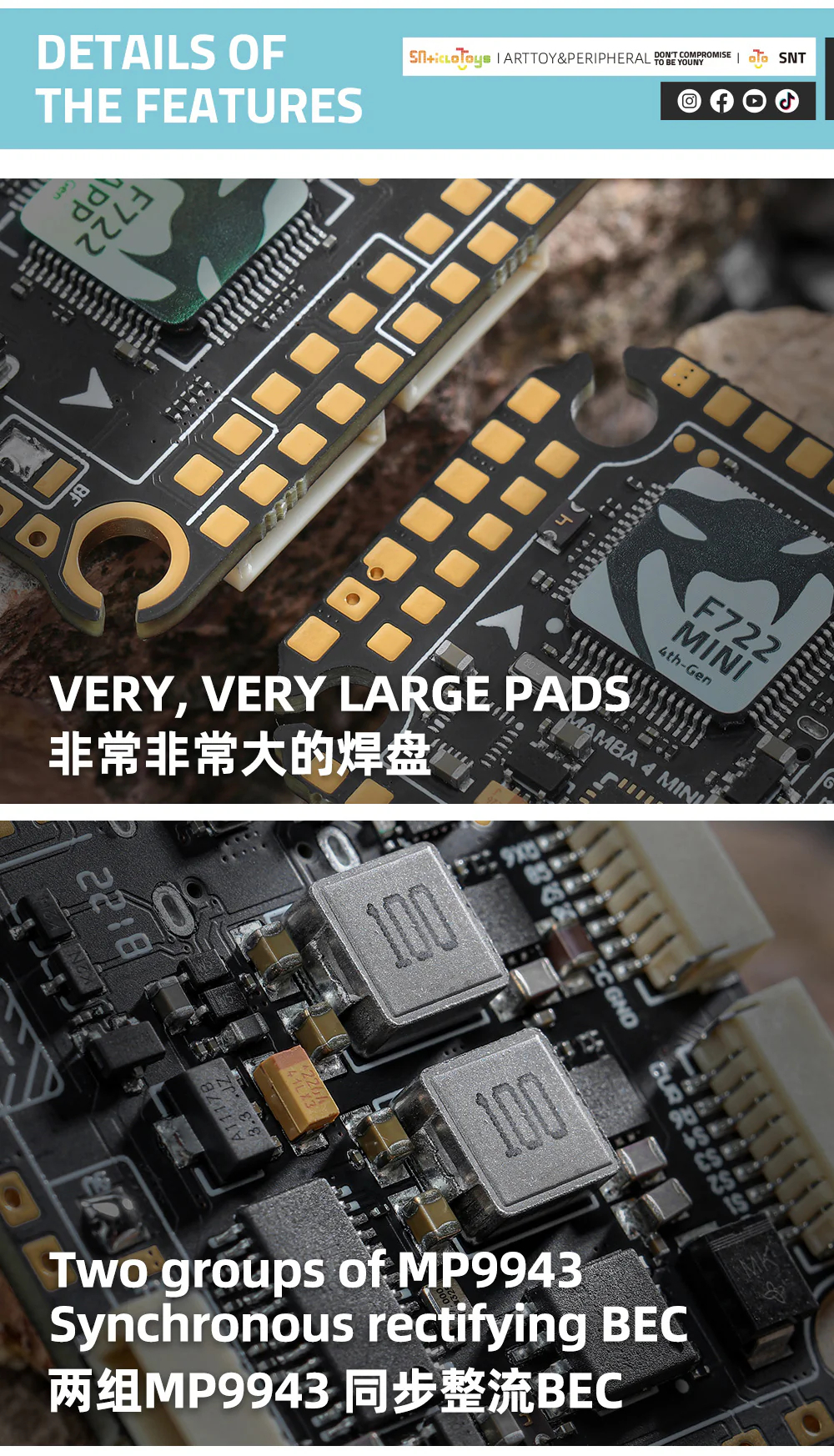 Model: MAMBA Reactor 44A ESC Input Voltage: 4~6S Lipo (16.8V~25.2V) Continue Current:44A×4 Burst Current:54A (10S) BEC: No Target: BLHeli_32 MAMBA5_Reactor_44 SOFT: DSHOT300/600/1200/MAX2400(FETTEC) PWM:24~128K Mounting size: 20mm,M2 |
