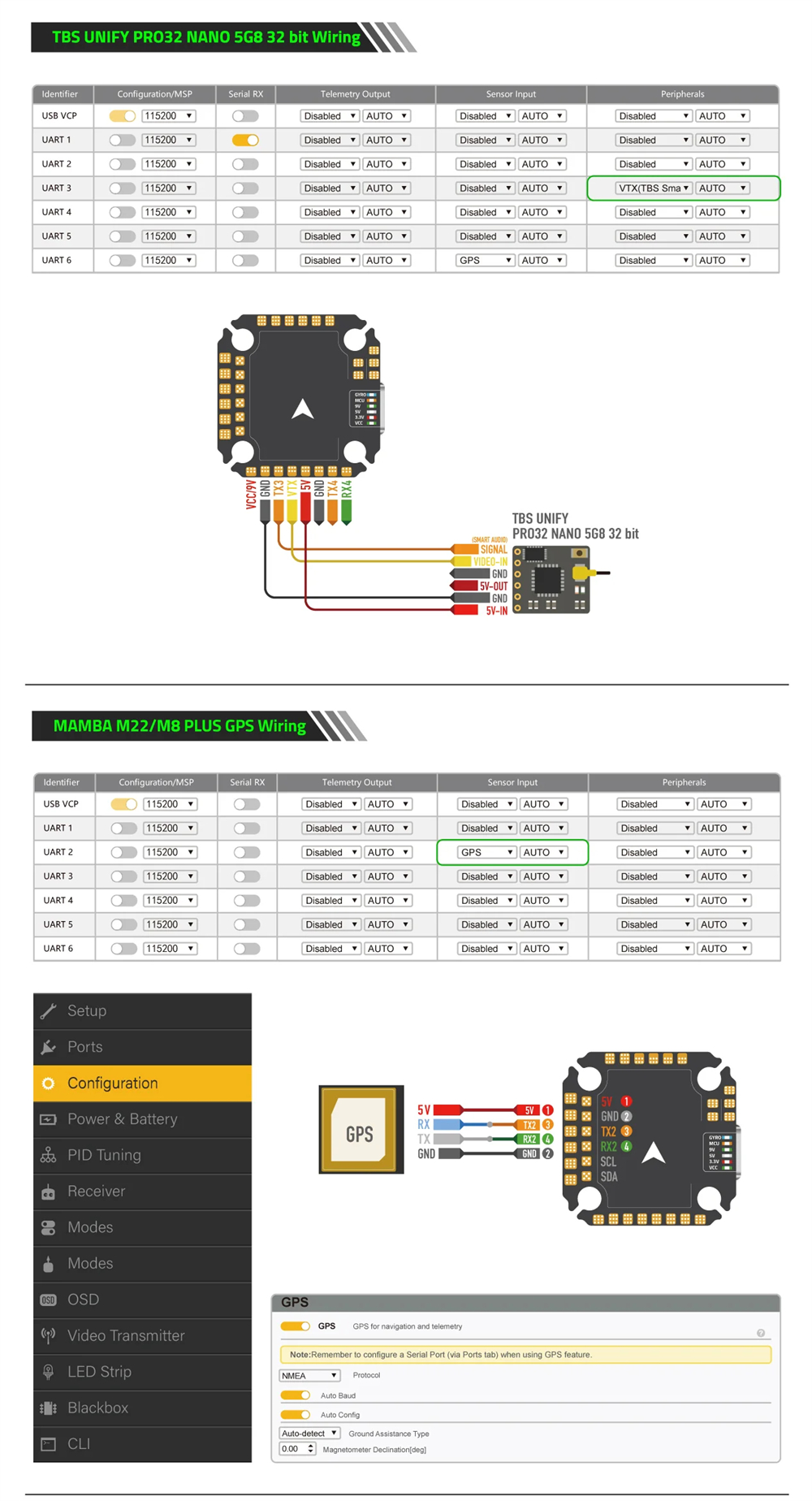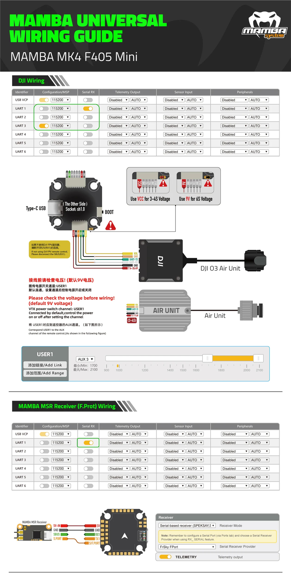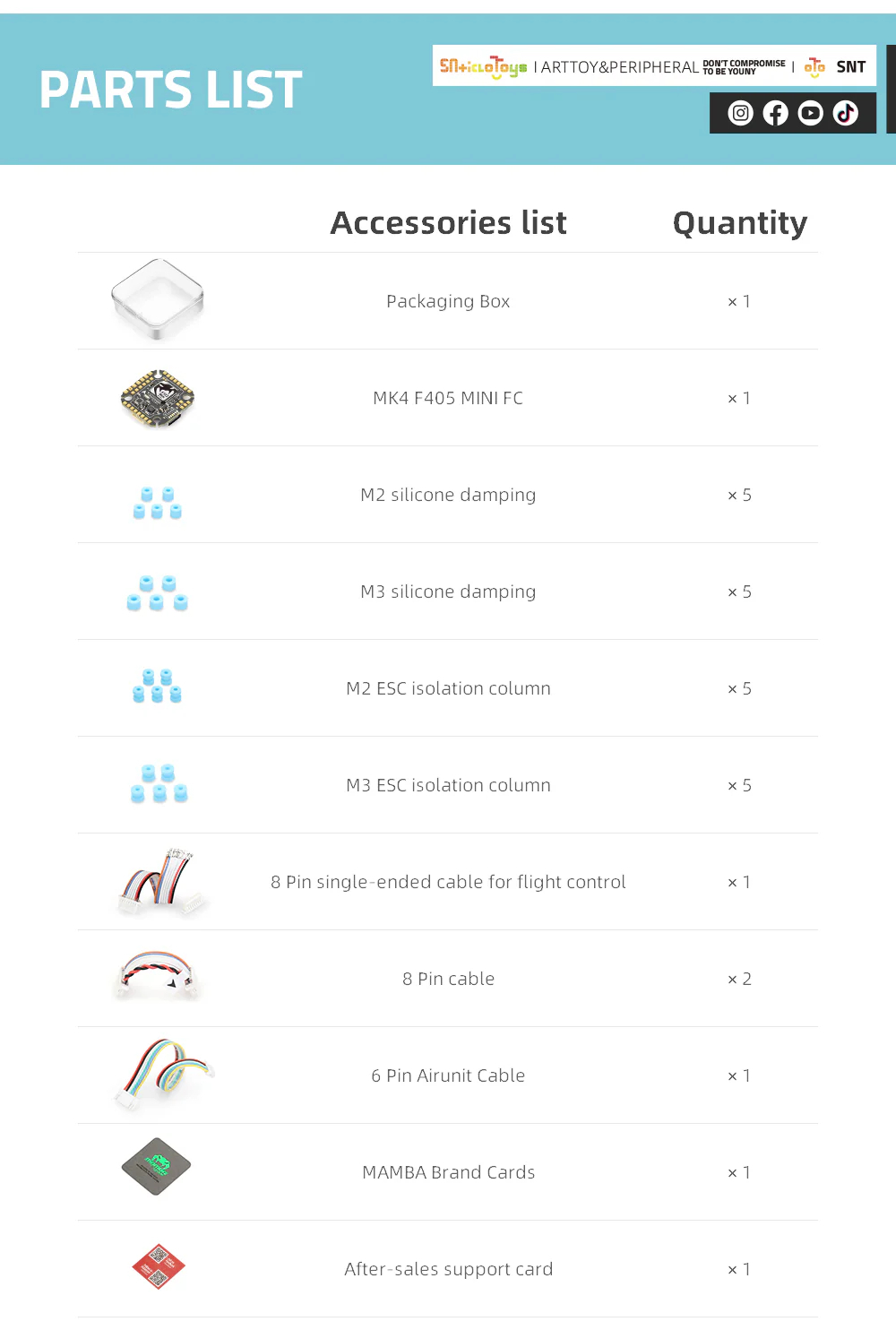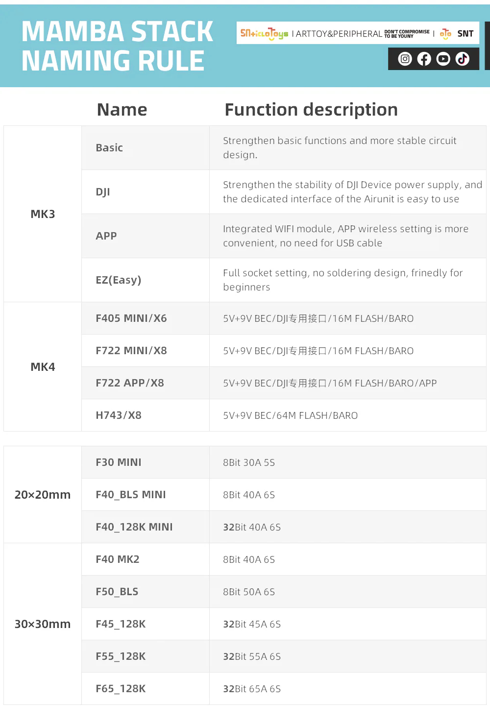 Model: MAMBA MK4 F405 MINI Flight Controller MCU: STM32F405 Frequency: 168MHz Gyro: Version: ICM42688P OSD: AT7456E Blackbox: 16M Memory Barometer: SPL06 Uarts: 6 Set Receiver: TBS/SBUS/IBUS/DSM RSSI Pad: / I2C: Yes F.Port: Yes Buzzer Pad: Yes Curr Pad: Yes ESC Signal: 6 Set BEC 3.3V: 0.5A BEC 5V: 2.5A BEC 9V: 2A MB Led: / BF Led: Yes Air Unit Port: Yes Wifi: / VTX Switch: Yes BEC Protection: Yes Receiver Protection: Yes TVS Protection: Yes Target: ICM42688P:MAMBA F405_2022B Input: 6S Lipo Soft Ware: Betaflight Mounting: 20.0x20.0mm, Ø 3/Ø 2 Size: 29.0x29.5x6.5mm Weight: 6.0g |