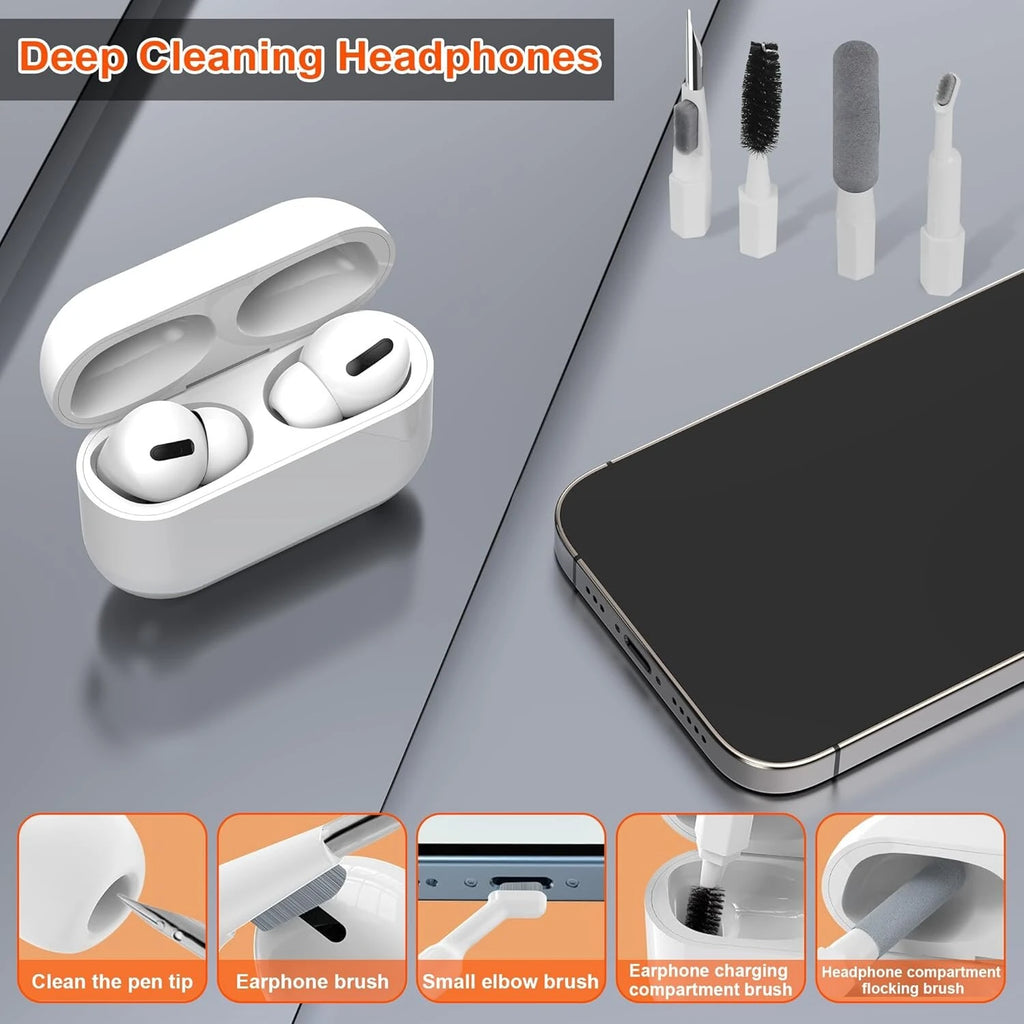 [UPGRADED 21 IN 1 ALL ELECTRONIC CLEANER]: This upgraded model has a mini vacuum cleaner. Thus, airpod cleaner and phone cleaning kit has become more useful. No more buying and preserving products for each technological device separately. It is a multi-functional, portable, compact design useful product.