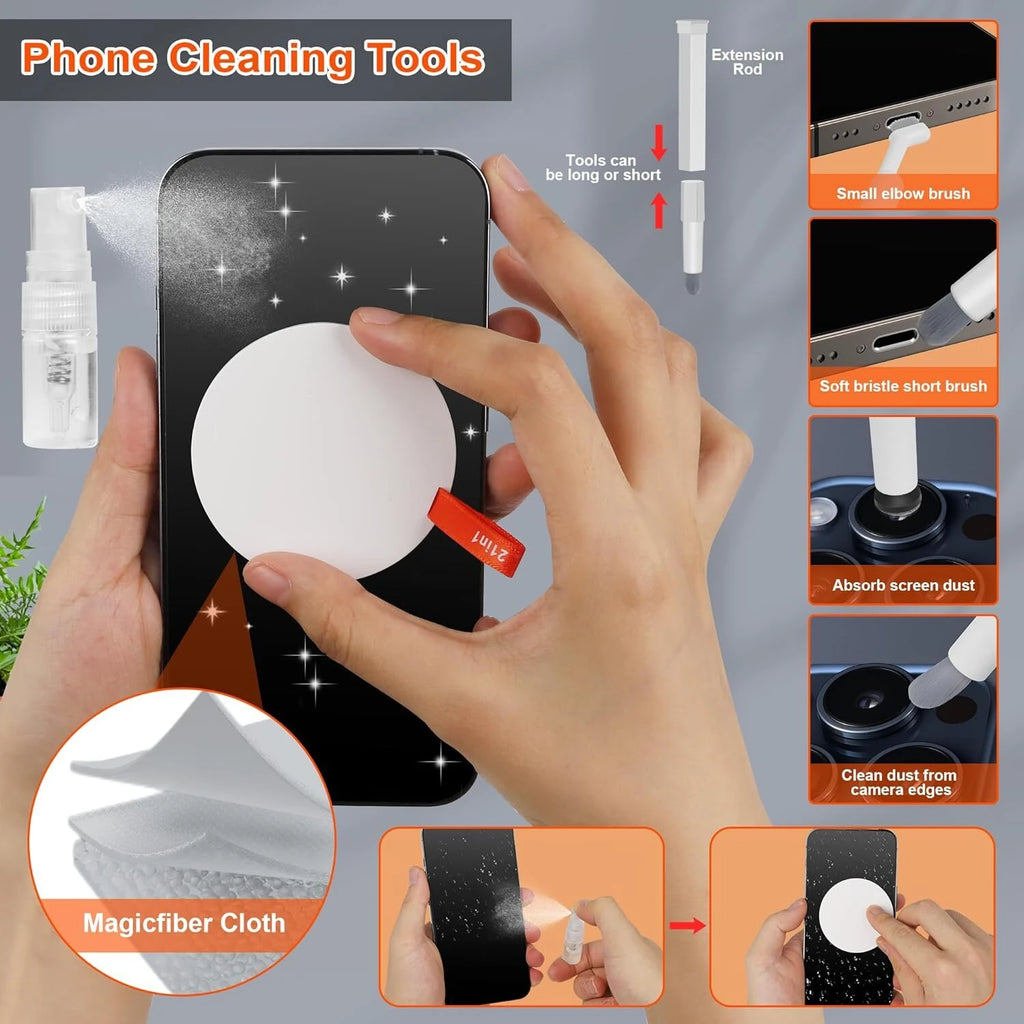 [KITS INCLUDED]: Storage Case, Mini Vacuum Cleaner, Small Bristle Brushes, Dual Head Bursh, Spray Bottle, Air Blown, Camera Screen Brush, Microfiber Washable Cloth On The Lid, Card Pickup Pin, Key Extractor, Shaft Puller, Headphone Brush, Cleaning The Pen Tip, Earphone Charging Compartment Brush, Flocking Sponge, Extension Rod for Small Parts