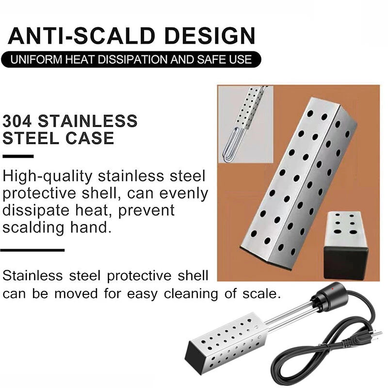 - Safety Features: The immersion heater comes with a high-quality 304 stainless steel protective cover to prevent direct contact of the heating element with people or animals. The perforations in the cover aid in effective heat dissipation into the water, allowing for safe and confident usage.