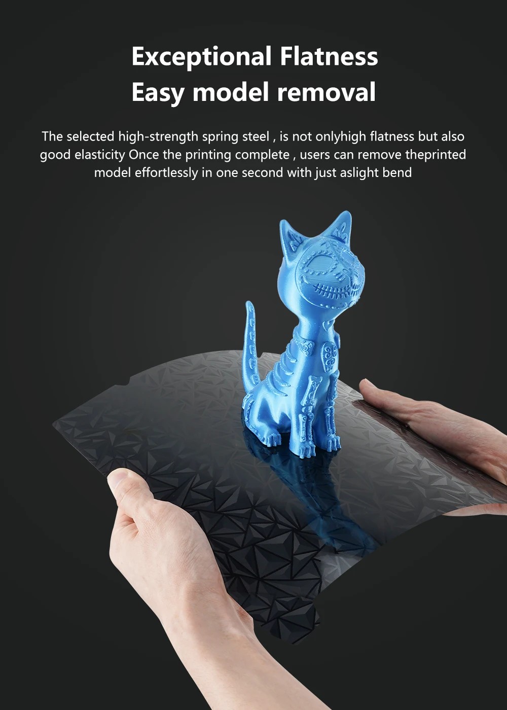 4. Easy Model Removal: Bendable spring steel design makes it easy to release models after printing.