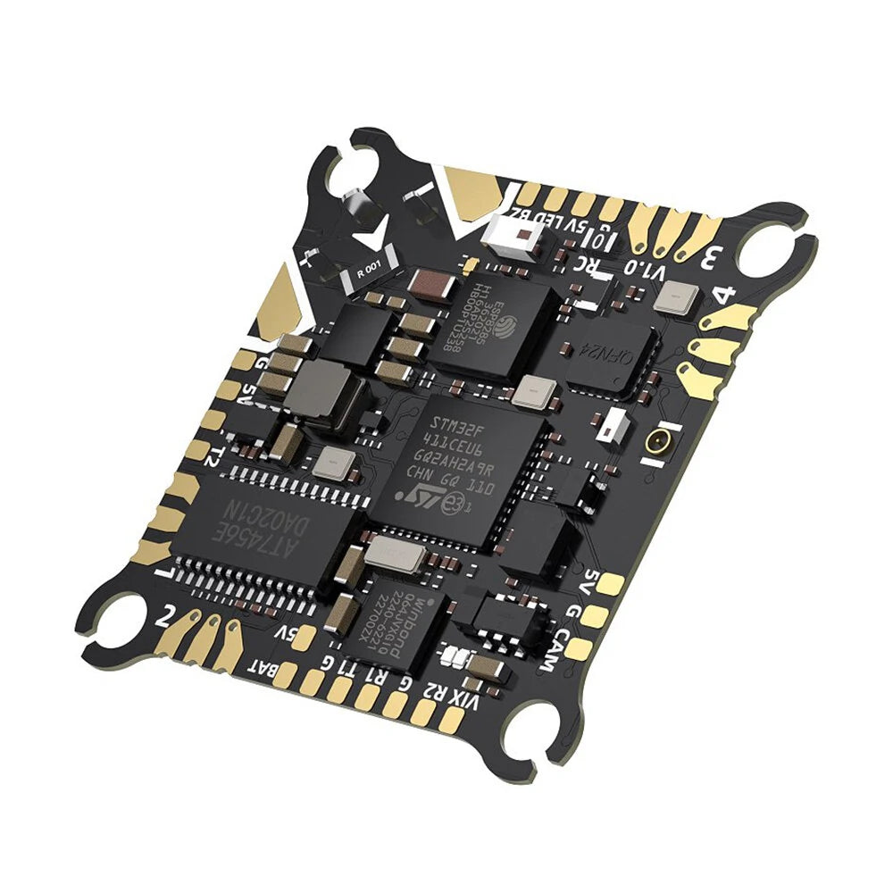 TAKER F411-12A-E 1-2S AIO is a lightweight and highly integrated flight control system, weighing only 4.2g. It is suitable for 1.2-2-inch Whoop models or 3-inch toothpick models.