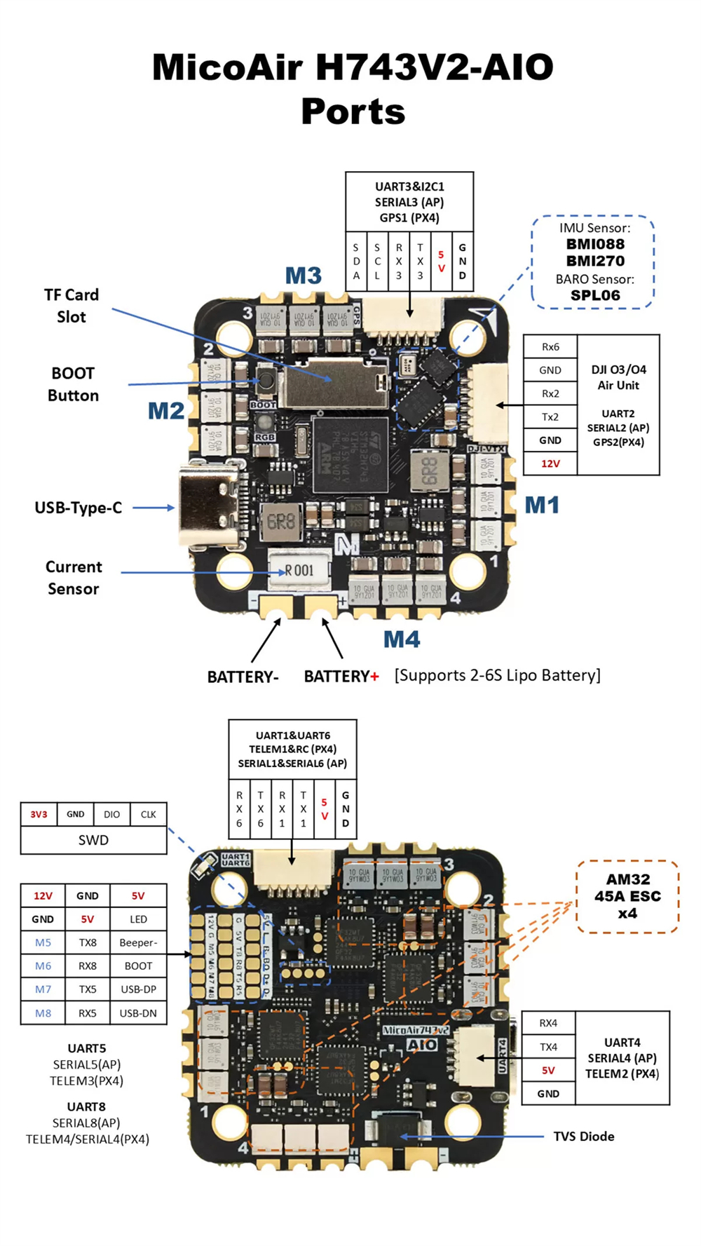FC Firmware Target: MicoAir743v2(AP); micoair_h743-v2(PX4); MICOAIR743V2(INAV)
