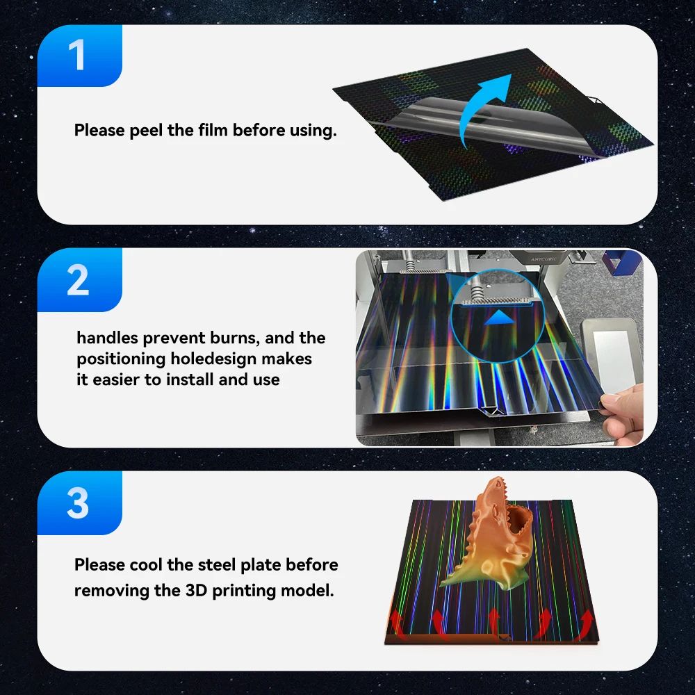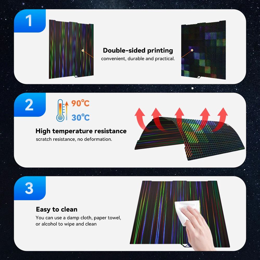 3) Recommended hot bed printing temperature: PEO/PET surface PLA/TPU 50-70℃ PETG 70-80℃
