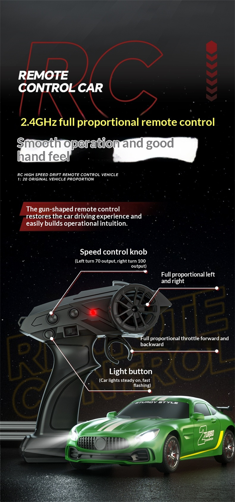 Enjoy precise control with a 2.4G remote controller that offers proportional throttle, giving you a more authentic driving experience.