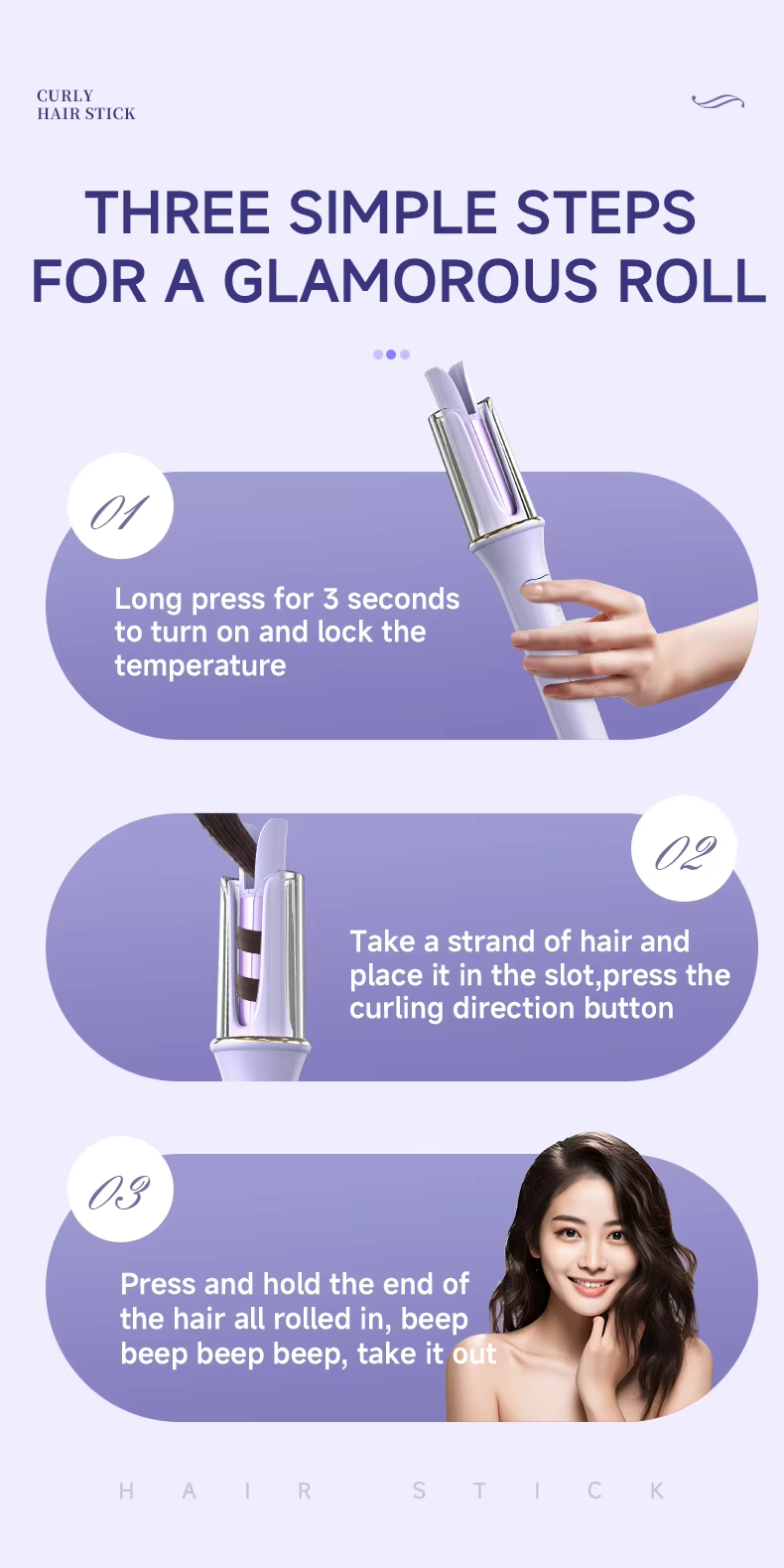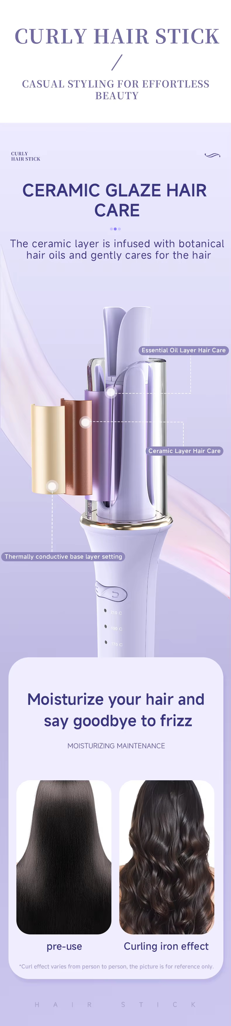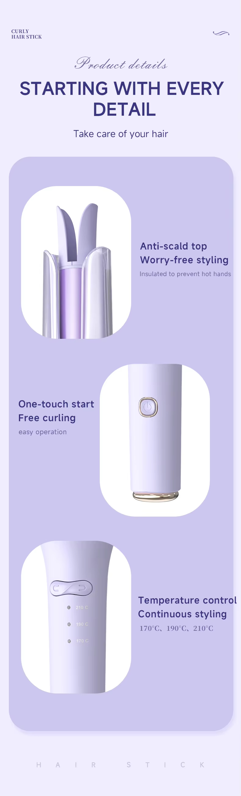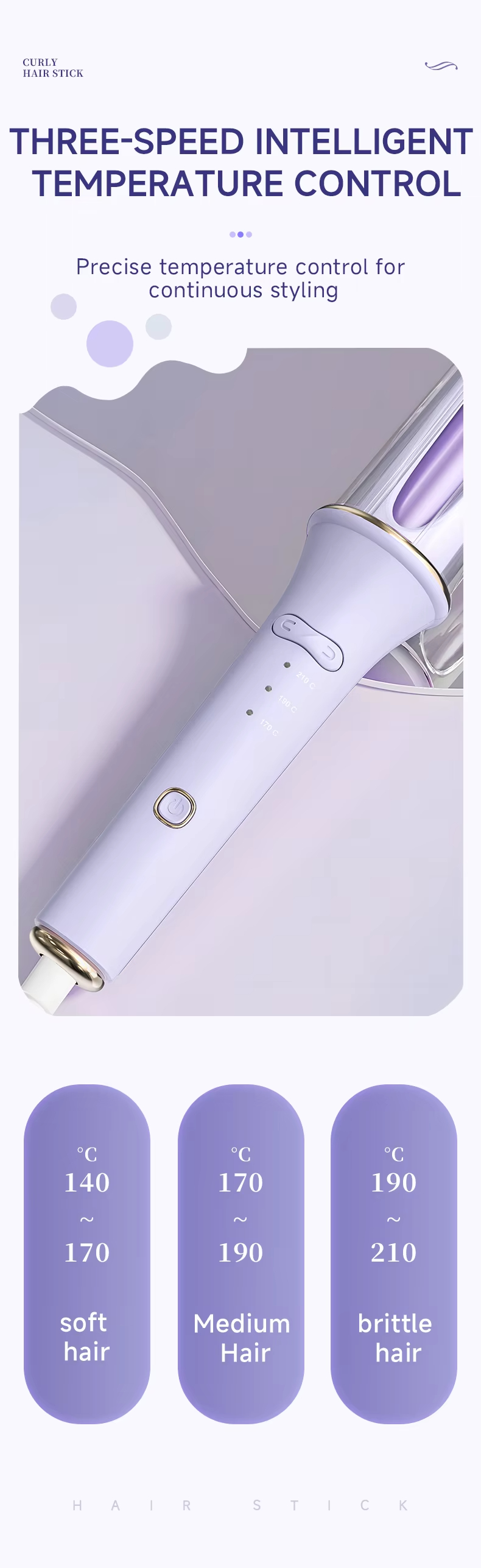 Designed to adapt to different hair types, the curling iron offers three temperature settings. Choose 170°C for fine and soft hair, 190°C for medium textures, or 210°C for coarse or thick hair to achieve optimal styling results.