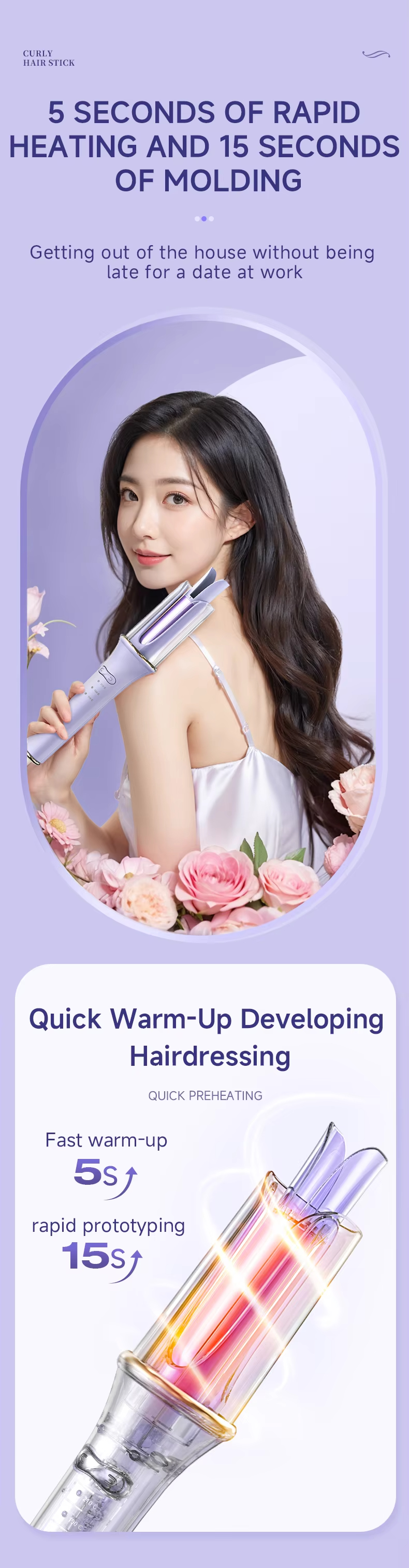 With a rapid 5-second heat-up time, this curling iron is perfect for busy mornings. The fast 15-second styling ensures flawless curls, helping you save time while preparing for your day.