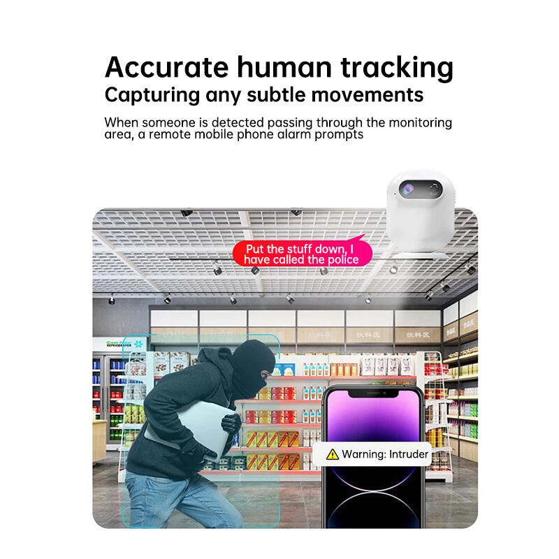 Smart AI human tracking ensures precise monitoring, automatically capturing movements and alerting you via the mobile app.