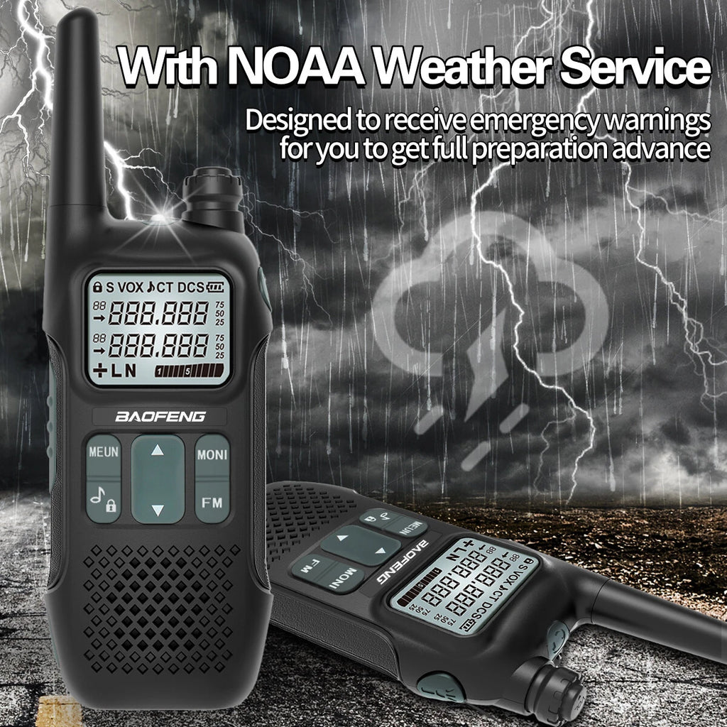 This walkie-talkie supports both GMRS communication and FM radio, offering a reliable solution for outdoor and emergency scenarios.