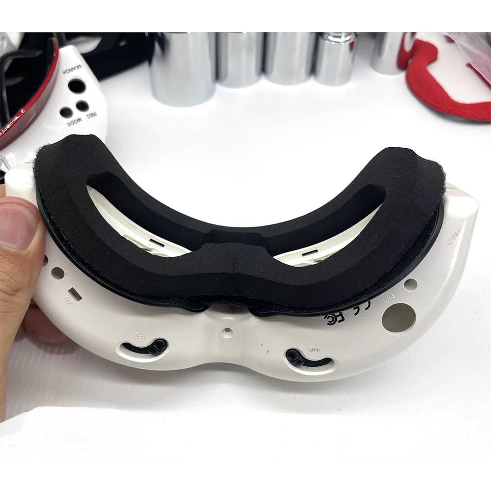 2. Using skin friendly and soft materials to reduce the pressure and pain on both sides of the forehead when wearing, widening and raising the forehead of the pad , thickening and raising the lower cheeks, improving the stability and comfort of wearing.