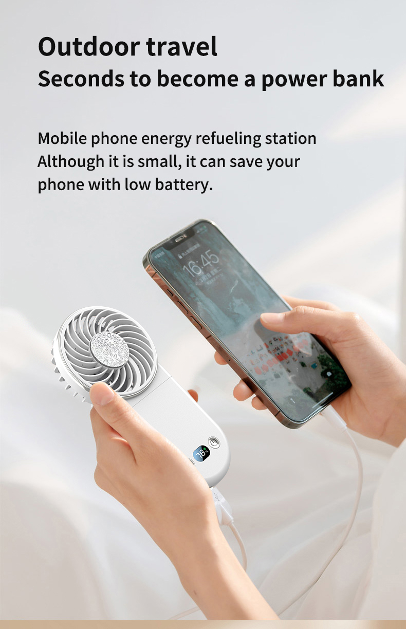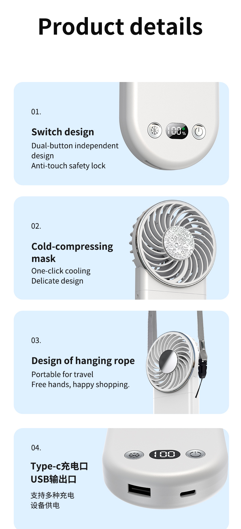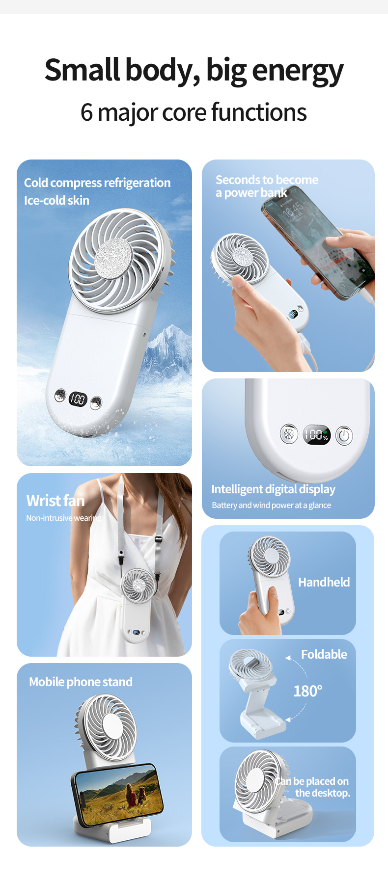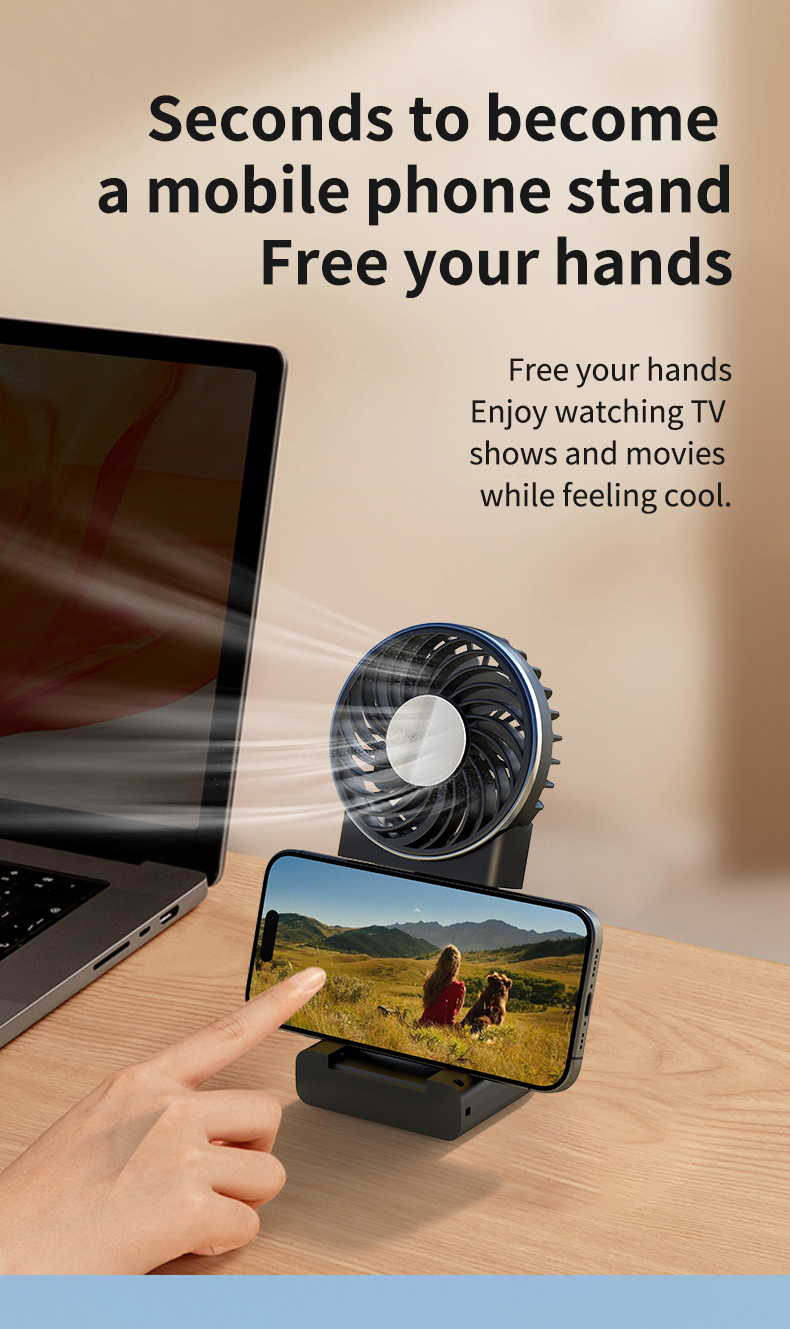 - Three-in-One Design: This versatile fan offers three modes of use: neckband, desktop, and handheld, ensuring maximum flexibility for your cooling needs. Whether you're working at a desk or strolling outdoors, you can stay cool effortlessly.