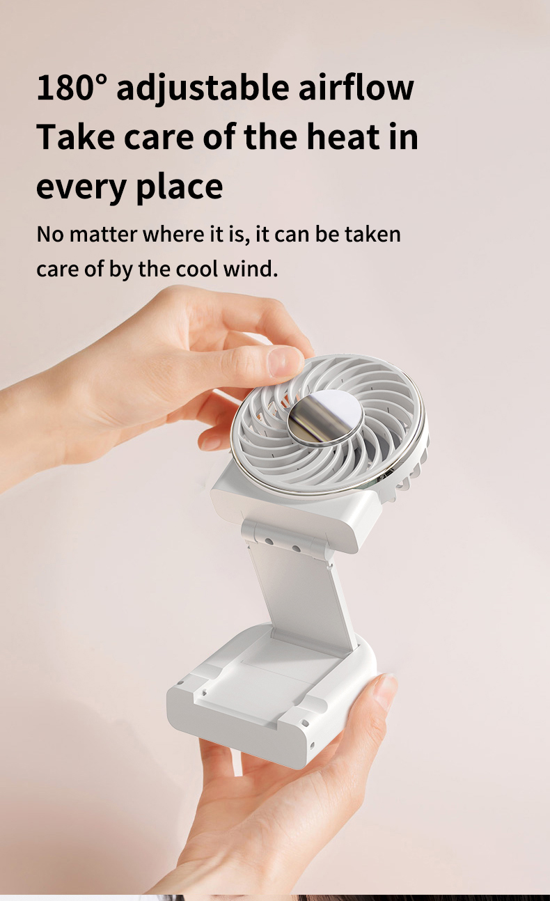 - 180° Adjustable Airflow: Enjoy steady cooling wherever you are with the Fan's 180° adjustable airflow feature. It's designed to direct the wind precisely where needed, keeping you refreshed at all times.