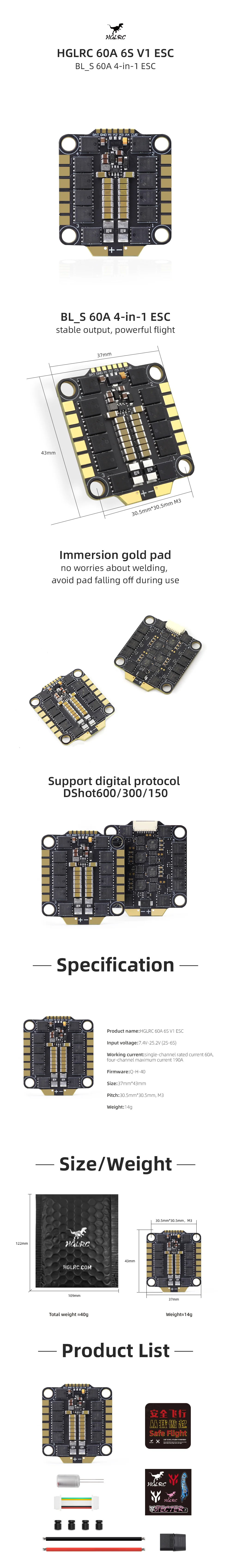 1. BL-S 60A 4-in-1 ESC, stable output, powerful flight.