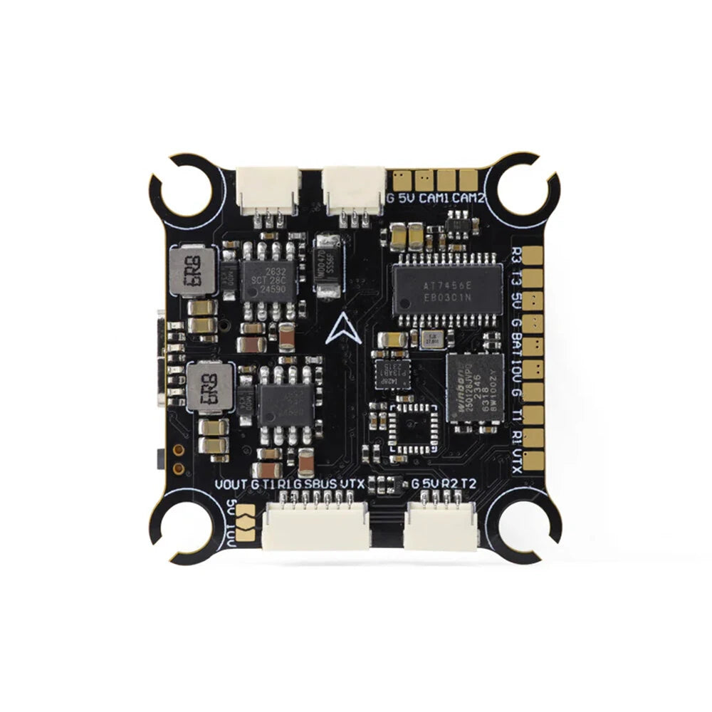 1. The flight controller gyroscope uses the high-performance ICM42688P for enhanced stability, with MPU6000 gyroscope pads reserved.