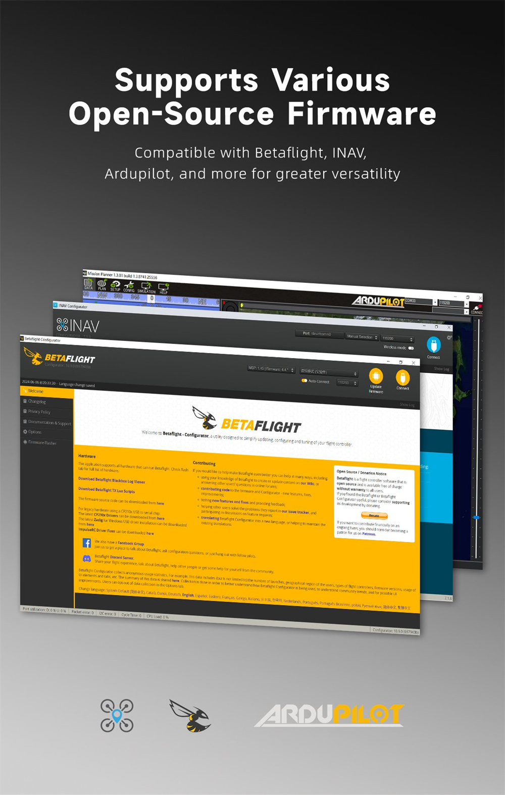 Compatible with Betaflight, INAV, and Ardupilot, it ensures flexibility. The dual independent 5V@3A + 12V@2.5A BEC ensures stable charging and motor voltage options. Features include seven UART ports, an integrated barometer, and plug-and-play functionality. With the TAKER H65_8S_32Bit 65A 4IN1 ESC, it delivers an exceptionally smooth flight experience.