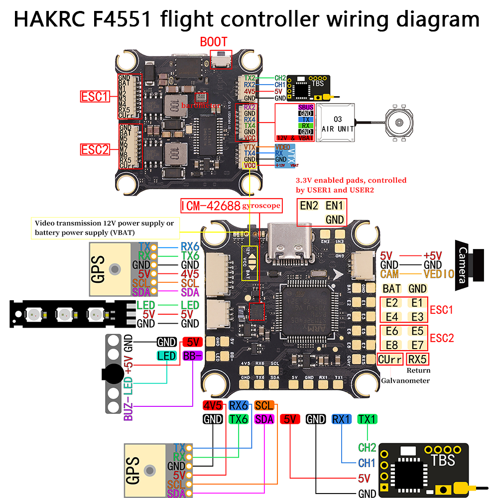 4. The board comes with an in-line programmable magic color LED light, which can switch LED lighting effects freely.