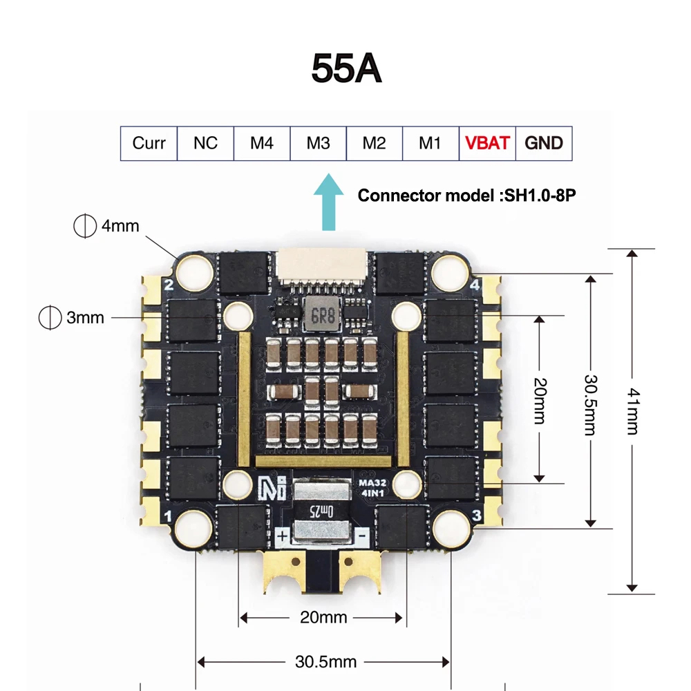 Model: 55A 2-6S AM32 32Bit 4in1 ESC