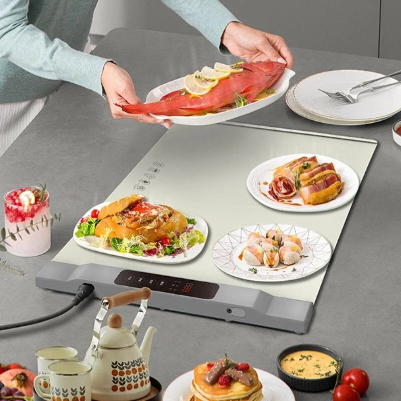 【Size】The dimensions of the heating plate mat are :646*430*28, providing ample space for your dishes. It is great for keeping your food warm on the dining table or kitchen counter.