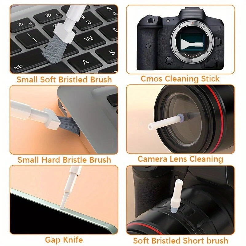 3. Versatile Cleaning Tools: Equipped with a variety of brushes and cleaning pens, this kit enables deep cleaning of intricate areas, such as headphone crevices, mobile charging ports, and camera lenses, ensuring optimal hygiene and functionality.