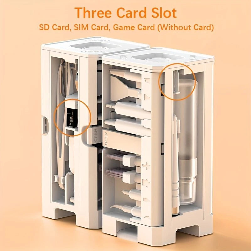 4. Three Card Slots: This cleaning kit includes dedicated slots for SD cards, SIM cards, and game cards, making it incredibly versatile and convenient for tech enthusiasts to store their essential cards securely.