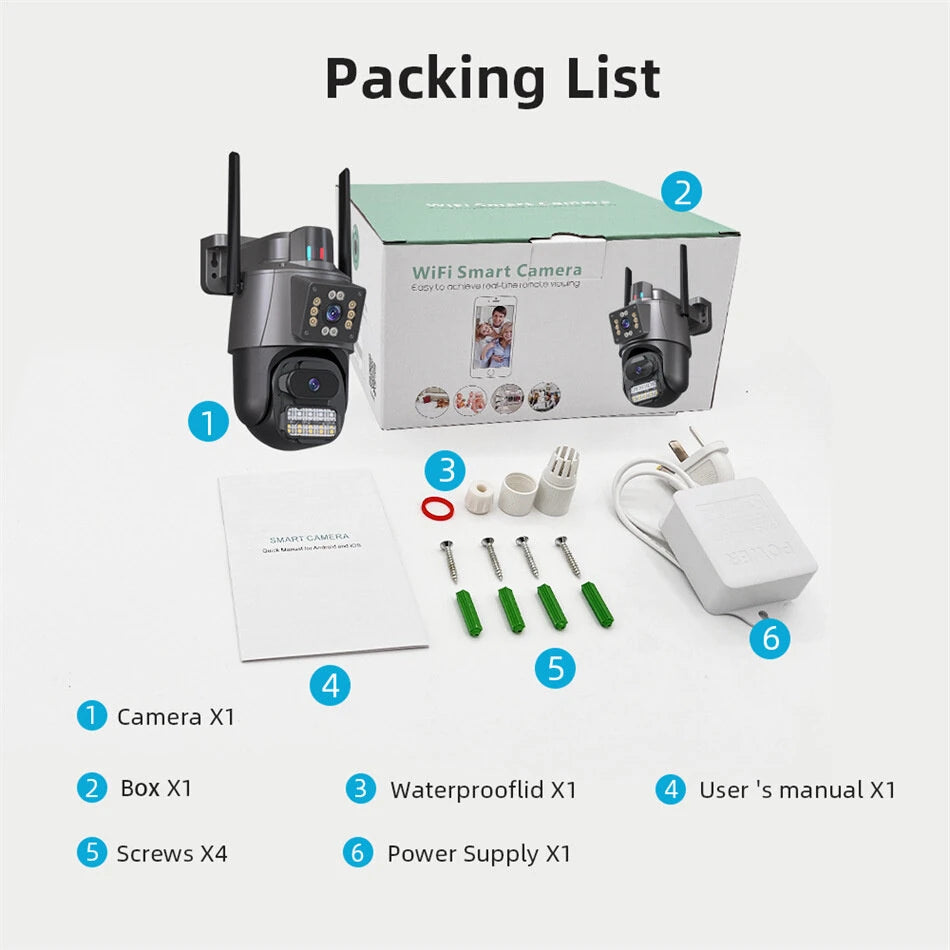 3. Spotlight & Audible Alarm: Activates bright LED lights and siren alerts to deter intruders.