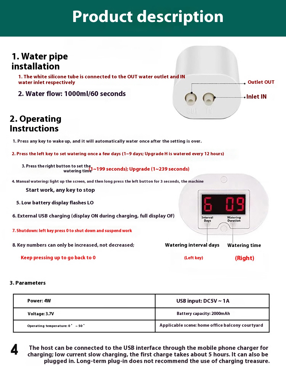 - Automated Watering System: Program the watering intervals and duration according to your plants’ needs. The system allows for precise adjustments, ensuring that your plants receive optimal hydration throughout the day.