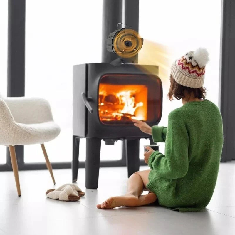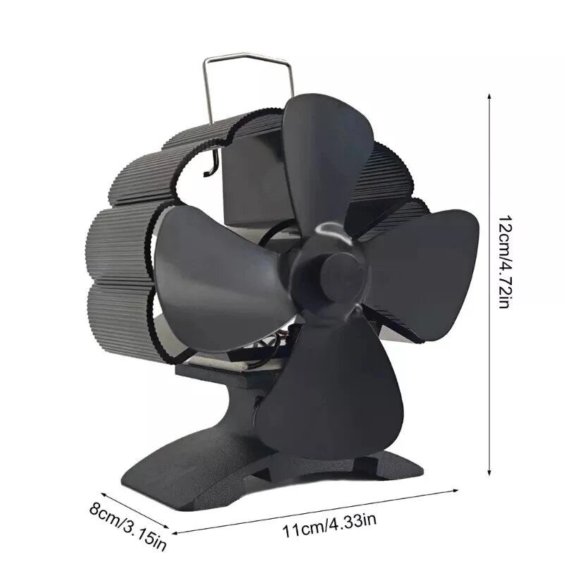 1.It runs on heat, without the need for batteries or electricity. Eco-friendly, reduced consumption.2.Instead of the heat rising vertically with a standard stove, the stove fan uses its blades to redirect the warm air horizontally.3.Whisper-Quiet operation won't interfere with your studies, work, or relaxing time. Easy to Install.4.High efficiency with a 41% increase in room temperature.5.The fireplace fan can be started automatically and the speed can be adjusted based on the temperature of the furnace.