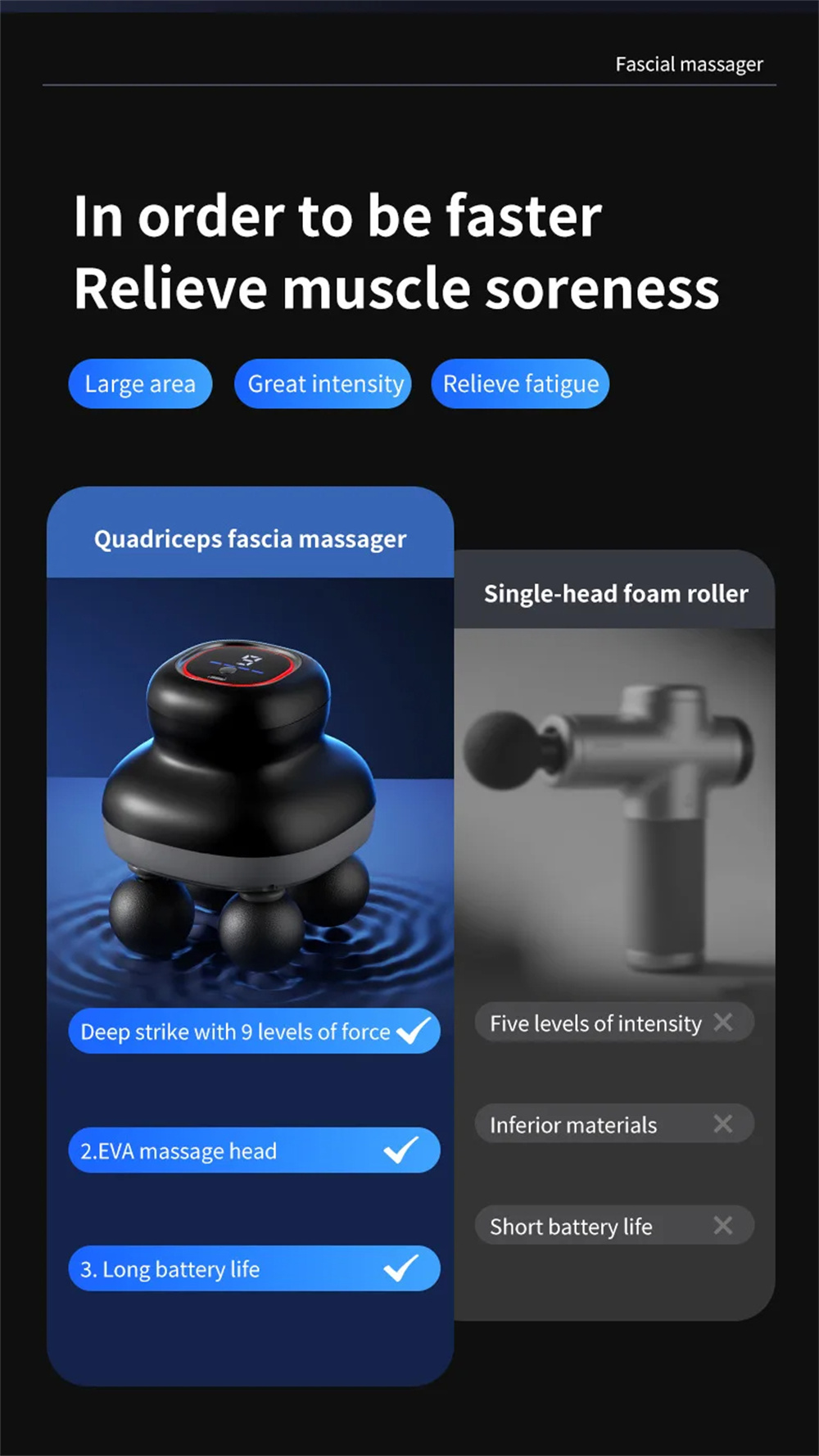 - 9 Adjustable Speed Levels: Choose from 9 intensity levels to match different needs—from light warm-up to deeper muscle work. Ideal for post-workout recovery, daily relaxation, or targeted relief.