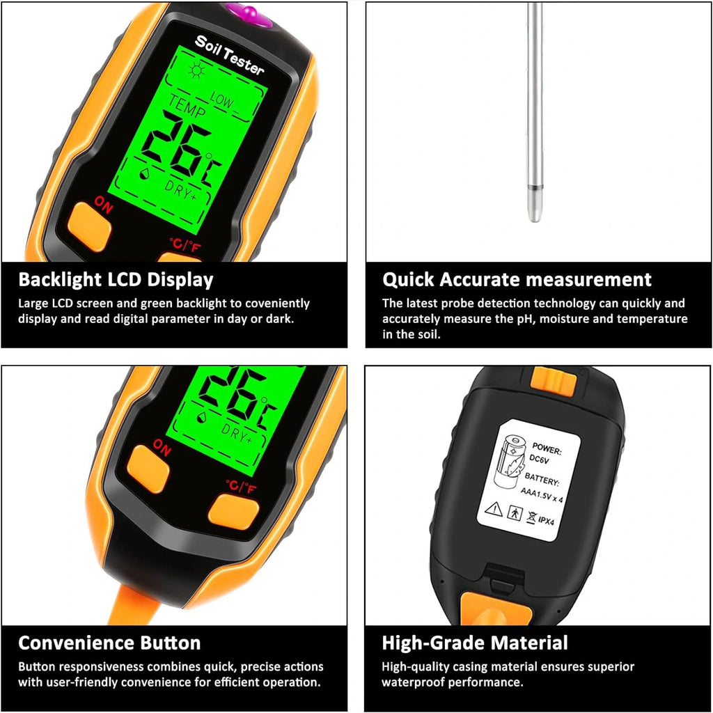 mso-bidi-font-family:'Times New Roman';font-size:10.5000pt;mso-font-kerning:1.0000pt;'>1. Comprehensive Testing: This 4-in-1/5 -in-1 soil tester measures multiple parameters including soil pH, temperature, moisture, and light intensity/ air moisture to give you a detailed understanding of your soil's health.mso-bidi-font-family:'Times New Roman';font-size:10.5000pt;mso-font-kerning:1.0000pt;'>