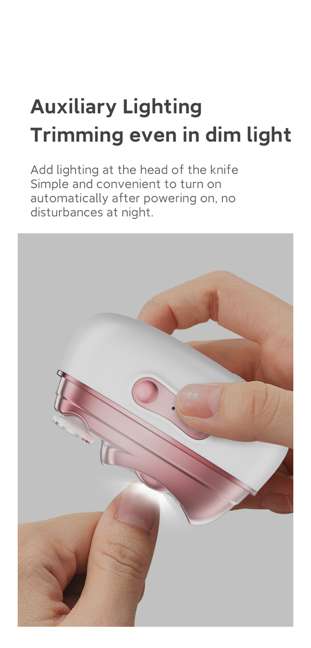 - Built-In Guide Light for Clear Viewing: The soft LED guide light helps you see the nail clearly, allowing you to trim safely without switching on room lights. Perfect for night use or low-light conditions.
